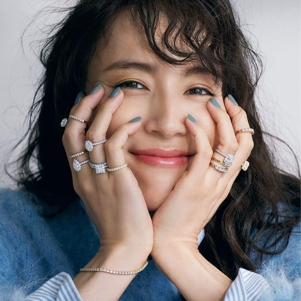 シャツ¥19,800(ペイデイ×ジーンズ ファクトリー/ジーンズ ファクトリー 卸団地本店) メガネ¥93,500(10アイヴァン/アイヴァン PR) ピアス¥17,600(シトラリー) リング[小指]¥79,200 [薬指]¥44,000(ともにヴァンドーム青山/ヴァンドーム青山プルミエール 伊勢丹新宿店)