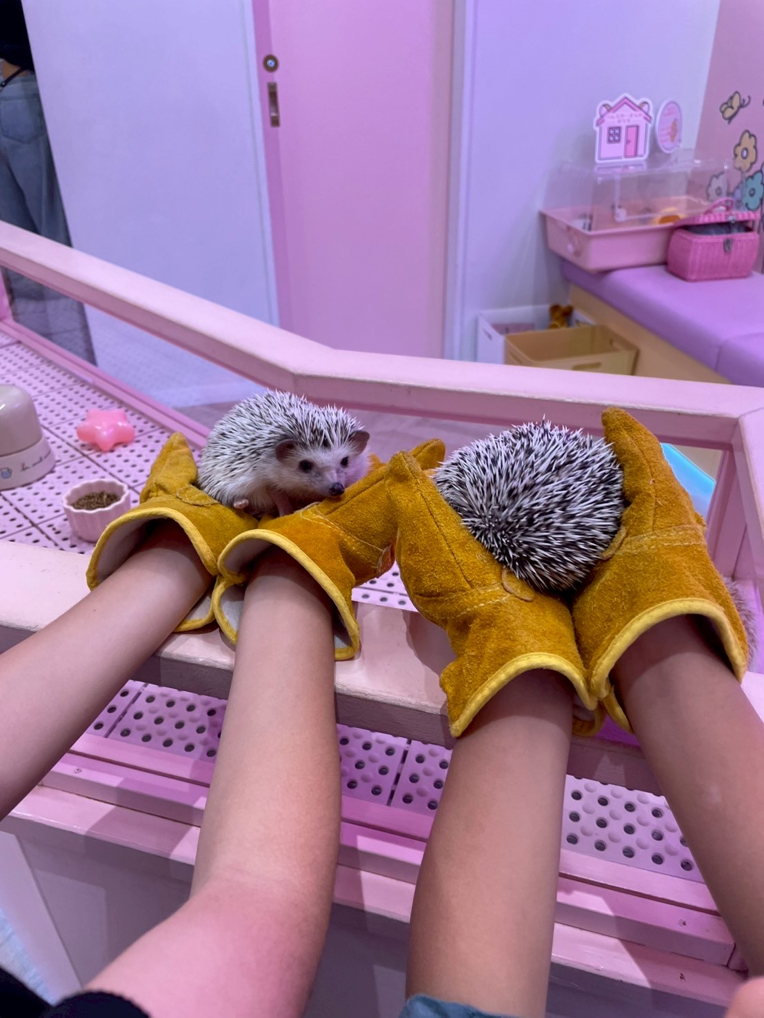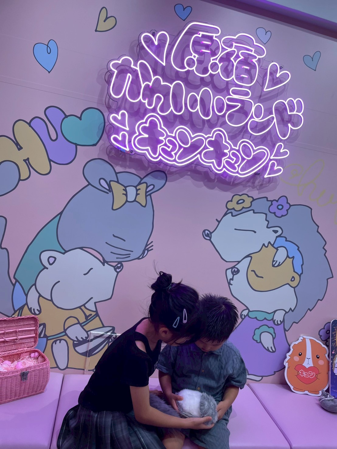 原宿はどうしても娘優先になってしまいがちだけど、ここなら息子も楽しいだろうし、ドイツにはこんな場所はなかなかないので喜ぶだろうなと行ってみたら、意外にも息子がハリネズミを怖がって(笑)! びっくりして大泣きしちゃっていましたが、それもいい思い出、いい経験。肝が据わっているタイプの娘は、どんな動物も可愛がって楽しんでいました♡