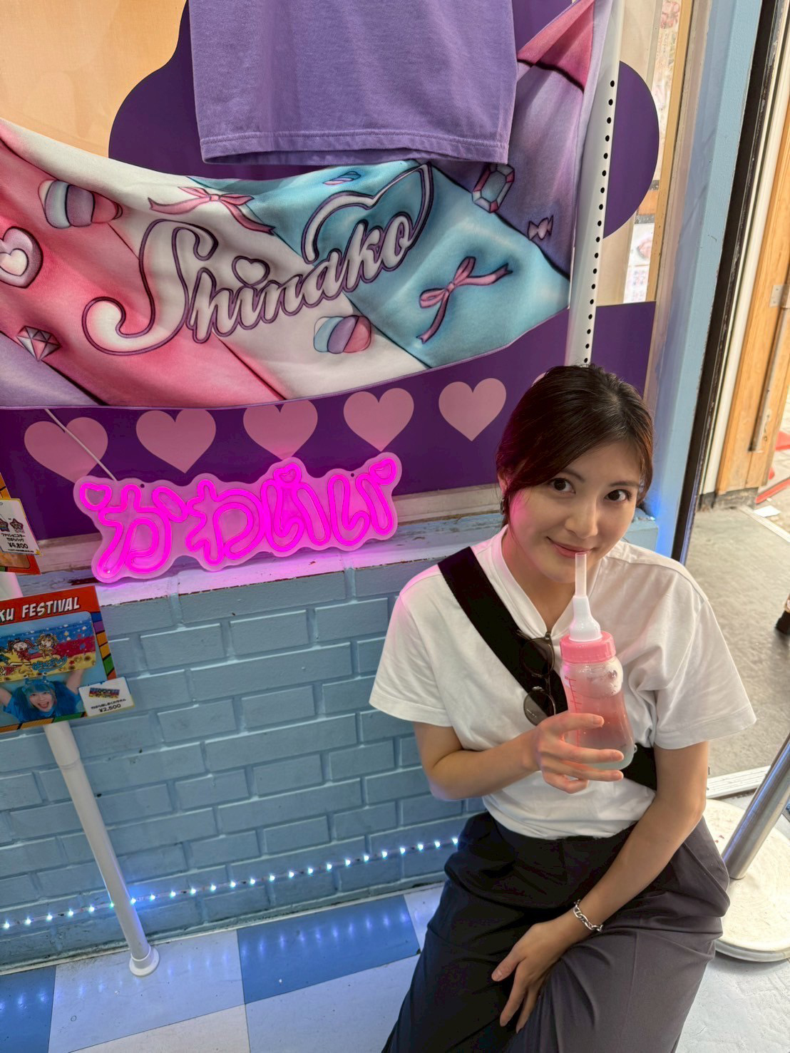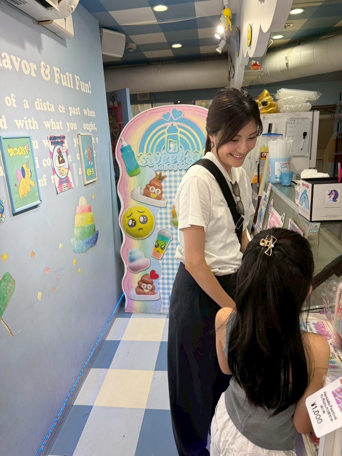 8歳の娘は、大好きなしなこちゃんのお店に行けて大喜び! ドイツでもYouTubeを見て、日本人のお友だちと一緒にハマっているんです。憧れの“哺乳瓶ドリンク”、うれしそうだったな〜。