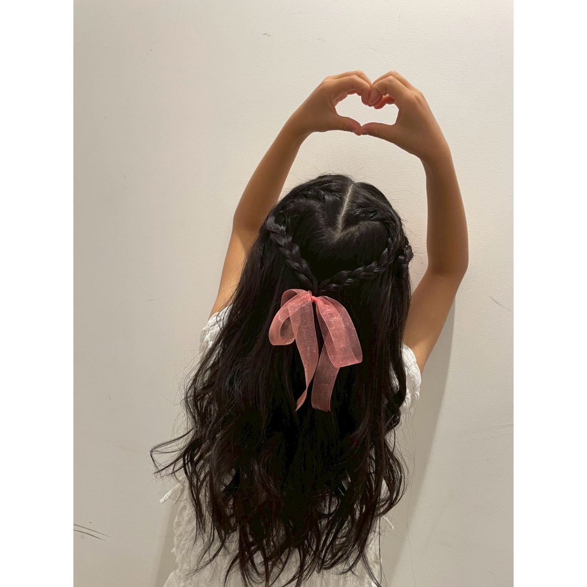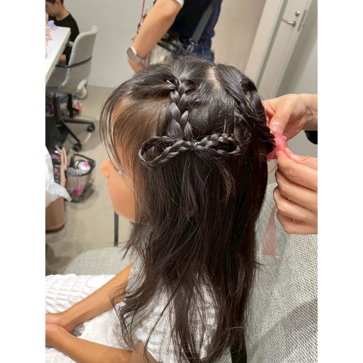 来てくださった方にプレゼントしたポストカードに使用したのは、娘が撮った私の写真。その撮影のタイミングで、娘とのツーショットも撮影してもらいました。娘がリクエストしたハートのヘアアレンジを、ヘアメイクさんがばっちり可愛く仕上げてくださって。いい記念になりました。