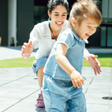 ラガーシャツ¥33,000スカート¥50,600ショルダーバッグ¥75,900トートバッグ¥49,500シューズ¥75,900(すべてポロ ラルフ ローレン/ラルフ ローレン)ピアス¥19,800チェーンブレスレット¥12,100バングル¥35,200リング¥14,300(すべてワンエーアールバイウノアエレ/ウノアエレ ジャパン)[ベビー]ポロニット×スカートセット¥29,700ぬいぐるみ¥13,200(ともにポロ ラルフ ローレン/ラルフ ローレン)ソックス、シューズ/スタイリスト私物 ベビーカー〈auto N second BQ〉¥31,900フロントガード〈auto N second FRONT GUARD〉¥3,300(コンビ コンシューマープラザ)