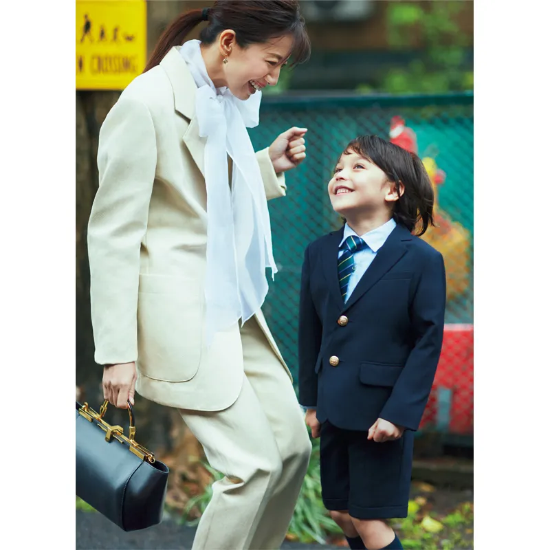 家族みんながドキドキの入園式・入学式。一生に一度の子どものハレの日であり、これから付き合うことになるたくさんの人との初対面の日でもあるから、ママも気合いが入るのは当然です。もちろん、素敵な家族写真だって撮りたい!そんな日にふさわしい、控えめかつ華やかなセレモニースーツスタイルについて、定番デザインや着回し術などをご紹介。「黒やネイビーのスーツではだめ?」というありがちな疑問にもお答えします。