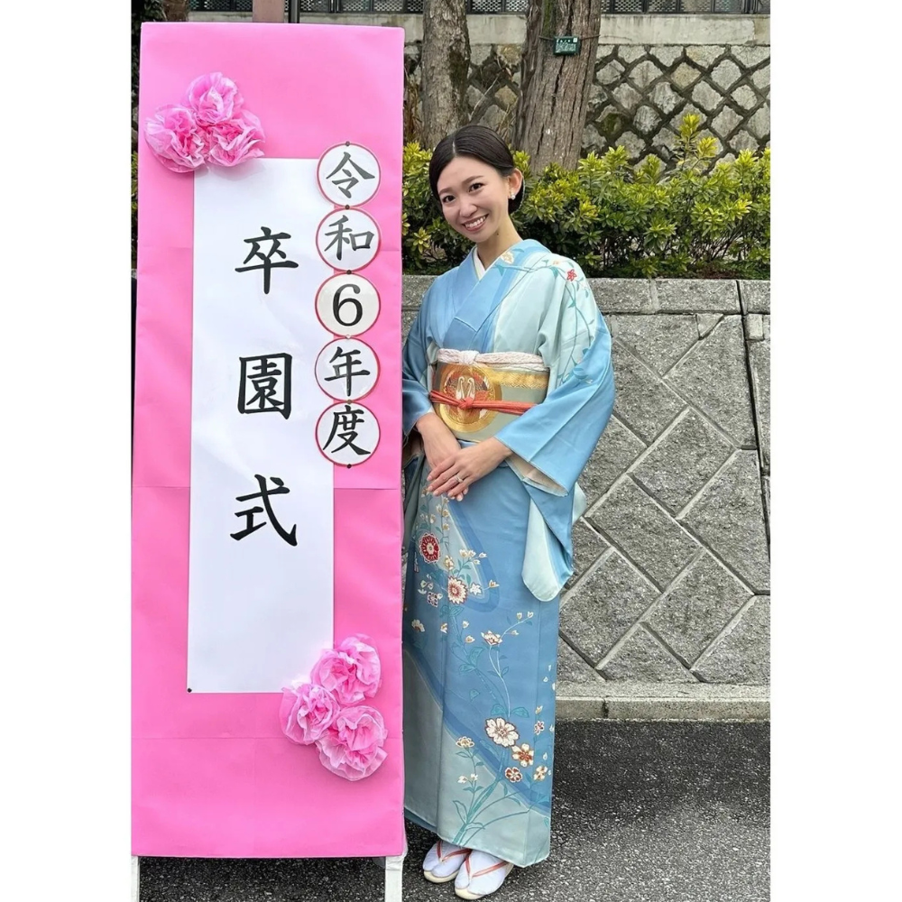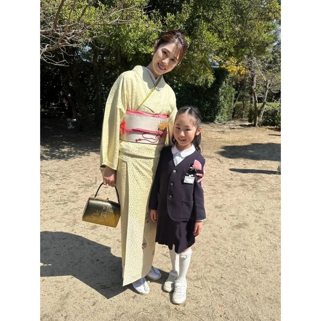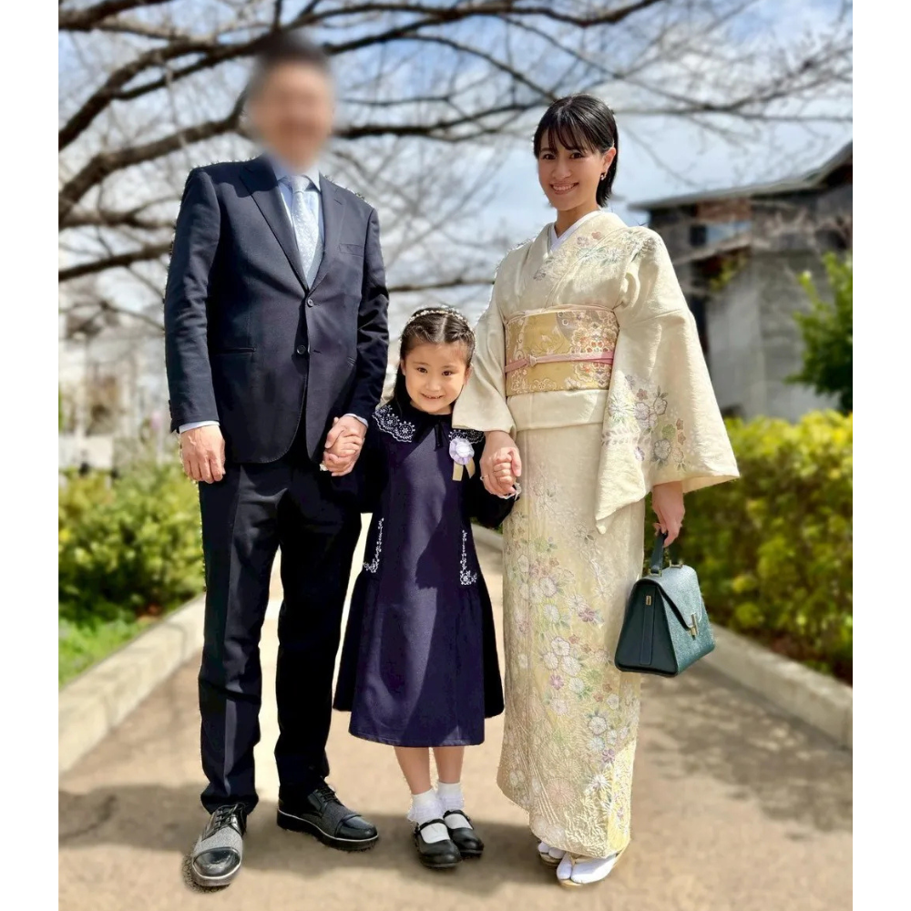 入園などの特別な行事はいつも着物でと決めています。私立幼稚園に通う長女の卒園式でしたが、保護者も1人だけと制限。あっという間でしたが着物で行くと感慨深い気持ちも深まり、着て良かったと思っています。着物は祖母の形見で、初ひ孫の長女を特に可愛がってくれたこともあり選んだもの。控えめな淡い色の着物だったので、叔母に借りた金地の華やかな帯を合わせました。ヘアセットは美容師である夫に、着付けは夫の知り合いに自宅に来ていただきました。