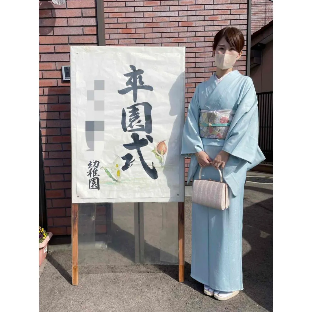 夫の年単位の出張に家族でついて行ったので、昨年の卒入園は名古屋ではなく東京で参加しました。東京での式は初めてだったので、何を着ようか迷いに迷ってしまい……。当初は洋装のつもりでしたが、最終的に間違いなさそうな和装で参加することに。同じ着物なら名古屋からの荷物も少なくて済むし、準備が楽だと思ったのも理由です。卒園は終わりではなく入学へと続く通過点と考えているので、その時間の流れを感じるためにも同じ着物にしたのは正解だったかなと思います。