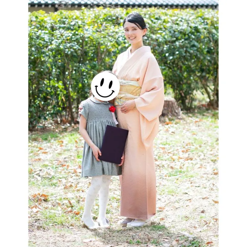 京都だからか、卒園式や入学式はほとんどの方が着物だと聞いていたので、早い段階から準備していました。娘の卒園式だったので、着物は母の柔らかいピンクグラデーションの色無地にゴールドの帯を選んで着用。ヘアはとにかくシンプルに、きっちりとしたイメージに仕上げてもらいました。着付けが上手だと評判の京都のREKOという老舗美容室にヘアとともにオーダー。着物を着たことで、記念写真も華やかになって良かったです。