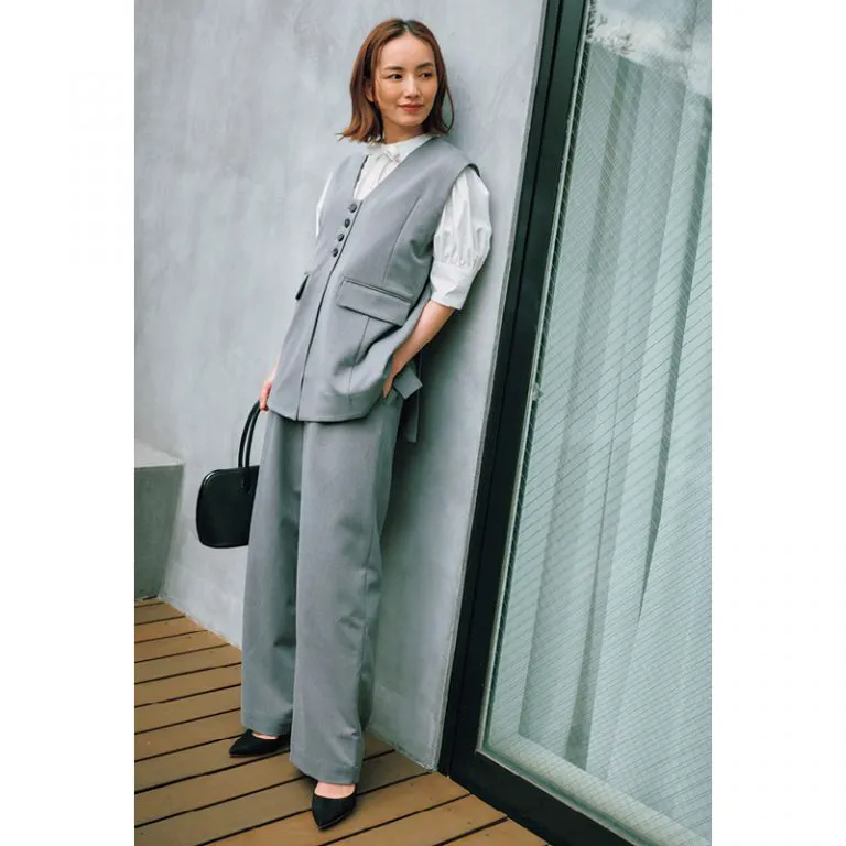 【通勤、母行事etc.】夏まで活躍の『セットアップ』はハンサム見えなベスト&パンツが最強! より