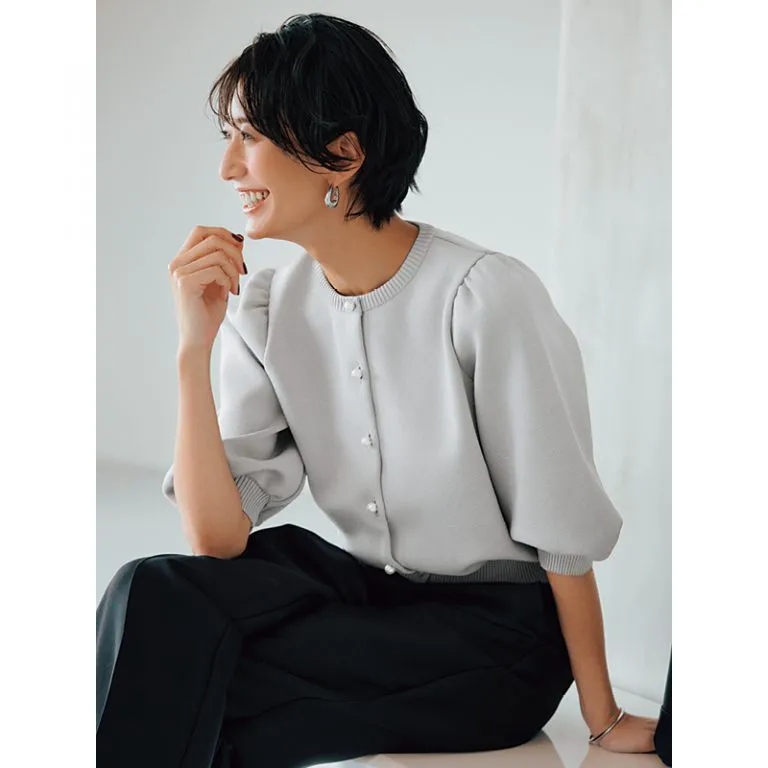 五分袖が万能!“ほんのりラメ”カーデで秋のコーデは一気にキレイめ より