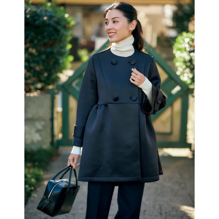 学校の門の前で写真を撮ったり、式のあとに先生やクラスの友達との別れを名残惜しんだり。卒園式・卒業式では屋外で過ごす時間も長く、まだまだ肌寒い3月だからアウターは必須です。写真を撮るときに、ジャケットのように見えるアウターなら着たままでも違和感なし。脱いだり着たりという手間もありません。高めの位置に切り替えがあるものを選べば着膨れせずスタイルアップできます。