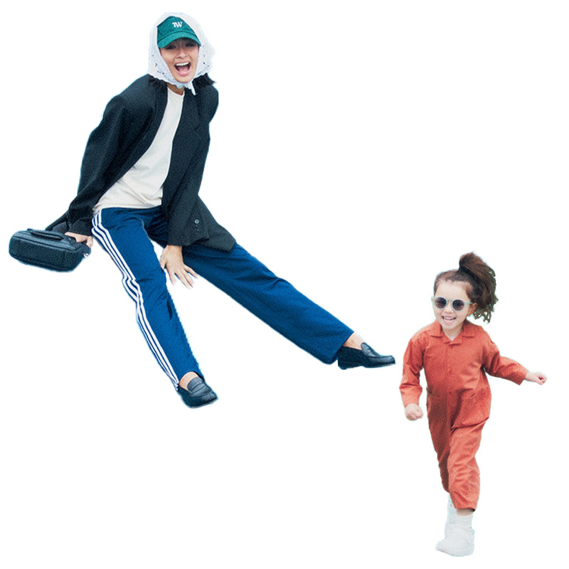 オーバージャケット¥10,990(ザラ)Tシャツ¥9,240(NOTHIN’ SPECIAL/ジャーナル スタンダード 自由が丘店)ラインパンツ¥10,670(アディダス オリジナルス/アディダス コールセンター)キャップ¥7,500(TW)バンダナ¥13,700(ザ シンゾーン/シンゾーン 表参道本店)バッグ¥172,700(ピエール アルディ/ピエール アルディ 東京)ローファー¥156,200(J.M. WESTON/J.M. WESTON 青山店)[キッズ]サングラス¥2,420(シップス/シップス インフォメーションセンター)その他/スタイリスト私物