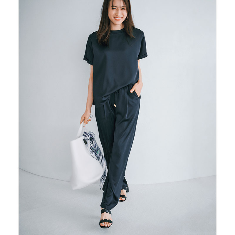 間もなくやってくるジメジメした梅雨や、汗だくの暑い毎日。VERY STOREには、そんな過酷で忙しい日々も爽やかなママでいられる快適おしゃれを集めました。今回は、涼しくキレイめキープできるサテン素材のTブラウスとゆるパンツのセットアップ。昨年は即完売した人気アイテムなので、気になるママはお早めに。