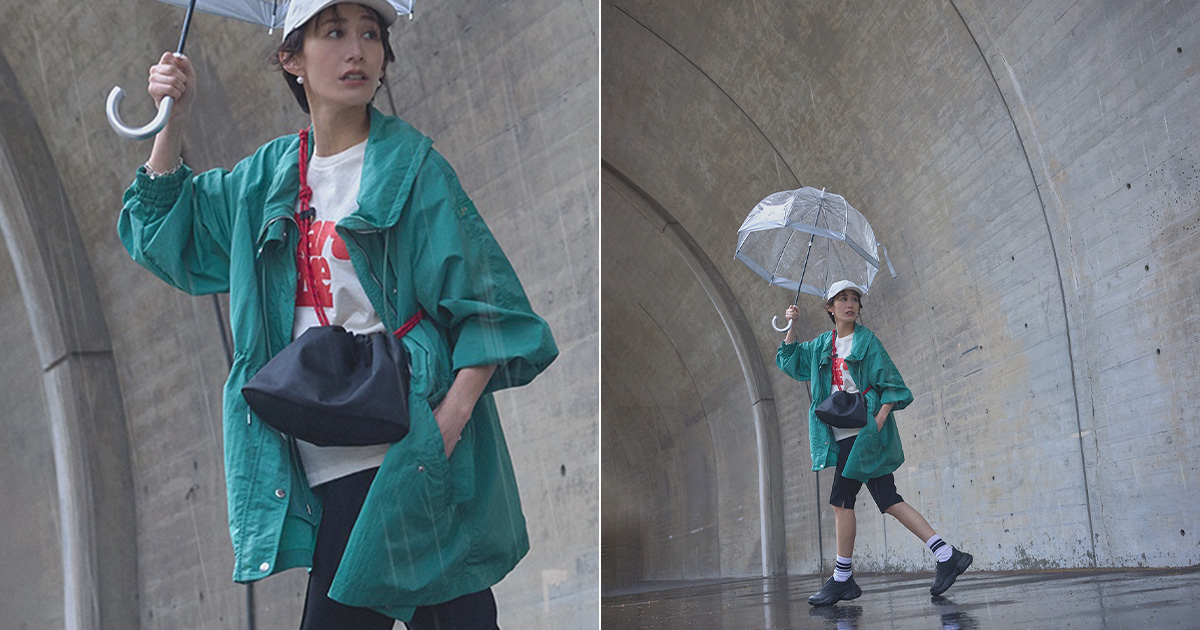 モッズコート¥114,400(タトラス/タトラス 銀座店)ロゴTシャツ¥8,580(ミクスタ/ユナイテッドアローズ 六本木ヒルズ店)バイカーパンツ¥17,600(ウィム ガゼット/ウィム ガゼット 玉川高島屋S・C店)キャップ¥13,200(ラ・メゾン・ド・リリス/アルアバイル)ピアス¥17,600(シトラリー)ブレスレット¥38,500(ブランイリス/ブランイリス トーキョー)バッグ¥12,100(ル ベルニ/ビューティー&ユース ユナイテッドアローズ 新宿ウィメンズストア)傘¥6,050(フルトン/ムーンバット)ソックス¥1,474(ユナイテッドアスレ/キャブ)スニーカー¥46,200(OAO)