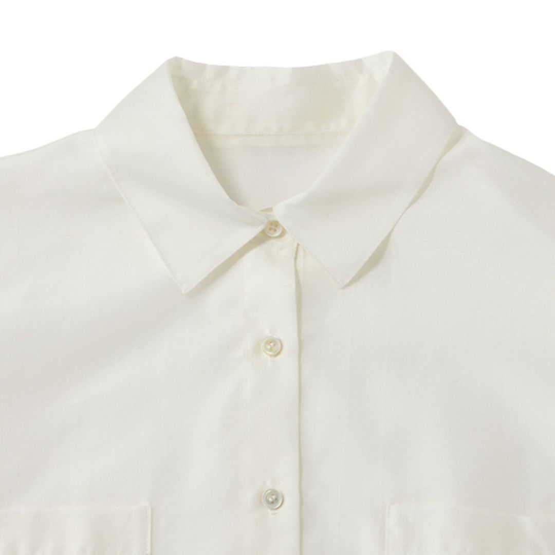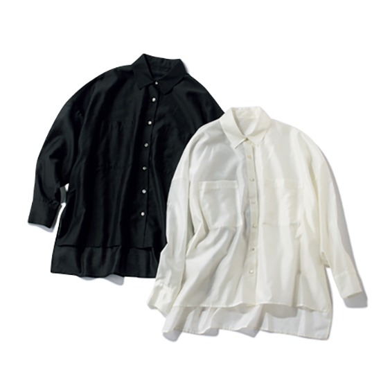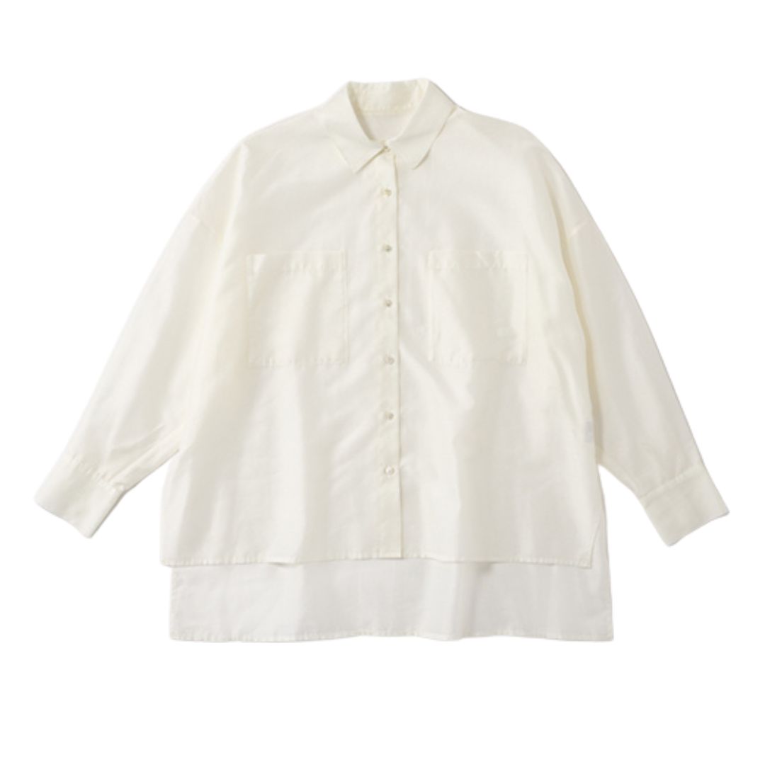 ほどよい透けとほんのりとした光沢が上品なシアーシャツ。リラクシーなサイズ感で身体のラインを気にせずに着られます。羽織りとしてはもちろん、ボタンを留めて一枚で着てもサマになる着回し力が魅力なアイテムです。サイドスリット入りでタックインしやすく、前後差のある着丈でヒップラインをさりげなくカバーしてくれるのもうれしいポイント。¥14,300