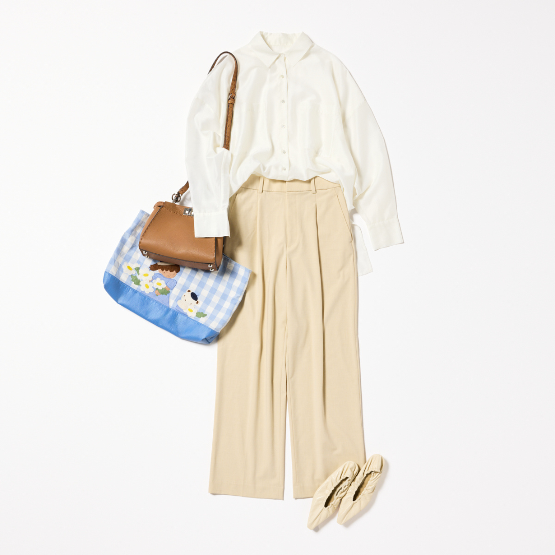 ボタンを上まで留めればきちんと感をキープしつつも、シアー素材の軽やかさで堅苦しくならないのが魅力。ハリのある上品な生地で、華やかなブラウス感覚で着られるのもうれしいポイント。ベージュ系の柔らかなトーンでまとめると透明感が際立ち、ナチュラルながらも洗練された印象に。控えめで上品なコーデは、園行事にもぴったり。