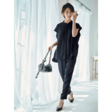 どんなアイテムとも好相性の黒パンツは、ママにとって欠かせない定番ボトムス。でも、ついワンパターンになって、無難なコーデばかりに…。そんなときは、ペプラムやリボンなどの華やかなディテールが効いた技ありトップスを合わせてみて!