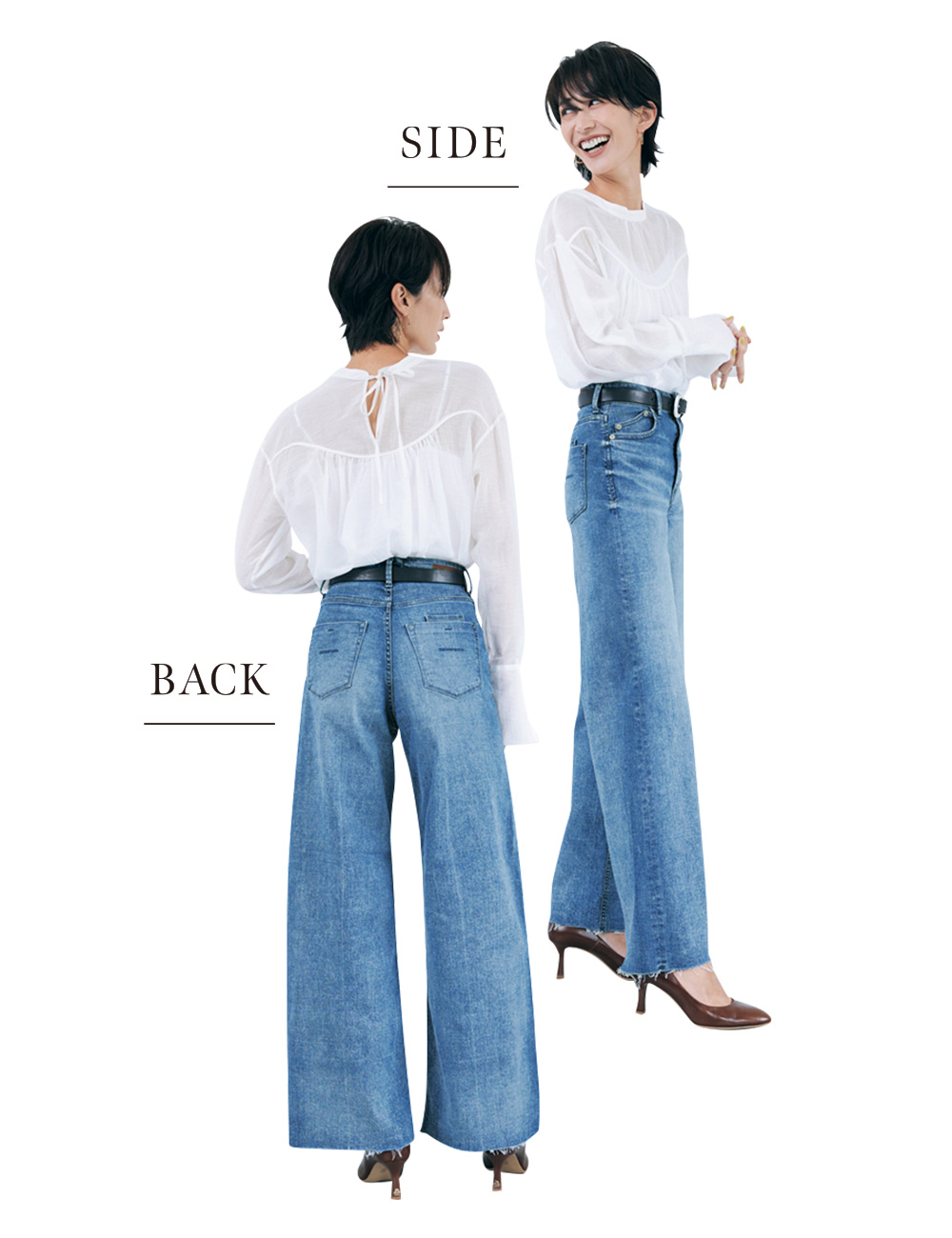 キックバックの効いたストレッチ性ではき心地抜群。肉感を拾いにくい適度なハリ感と緩やかに広がる切りっぱなしのフレアは、小柄さんが裾をカットオフした際もシルエットやこなれ感がそのまま堪能できるとして密かに人気とか!