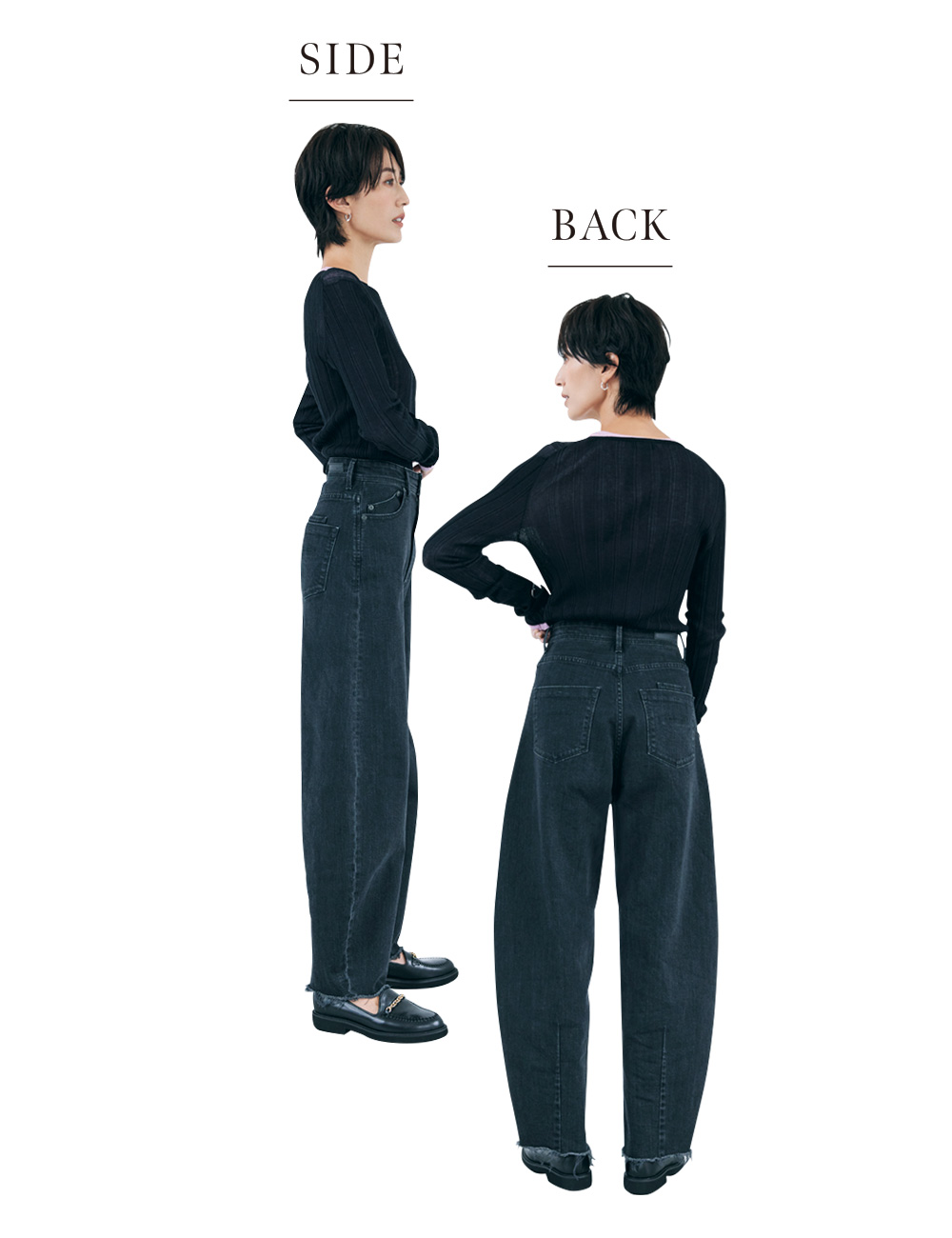 洒落感のあるカーブシルエットのLAURAの新色。織り方にもこだわり、風合いのあるワンランク上の“黒”を表現。