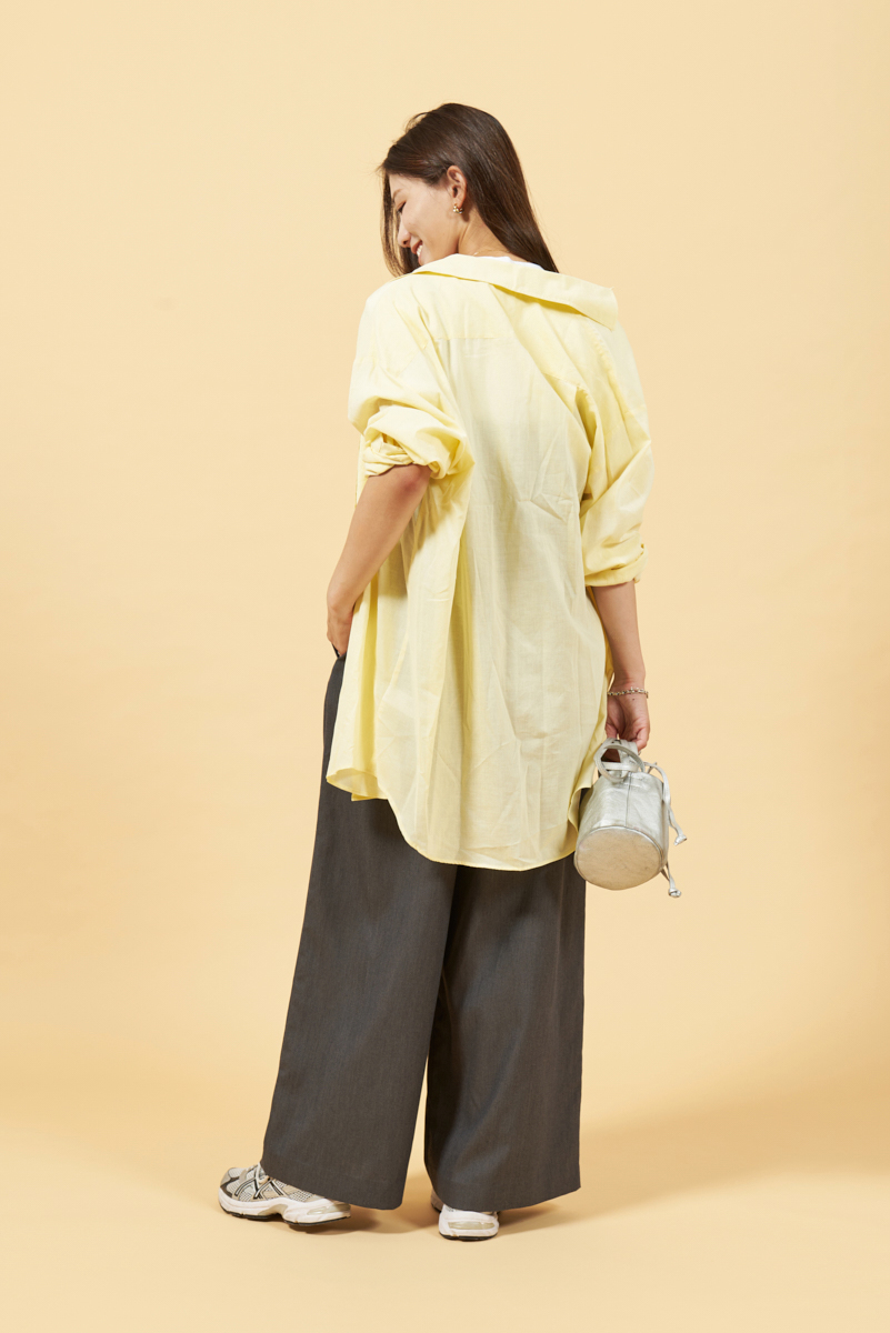 ゆったりとした作りに反して、ウエストのタックで驚くほどスッキリ見えするサロペット。きれいめ素材なのでカジュアルになりすぎず、オンオフ問わず活躍します。胸元のスカラップデザインがさりげない甘さをプラスしてくれるので、インナーを変えるだけでさまざまな表情が楽しめるのもいいところ。厚手のニットを合わせてももたつかず、ジャケットやカーディガンを羽織ればシーズンレスで着られる万能アイテム。自宅で水洗いも可能です。¥19,800