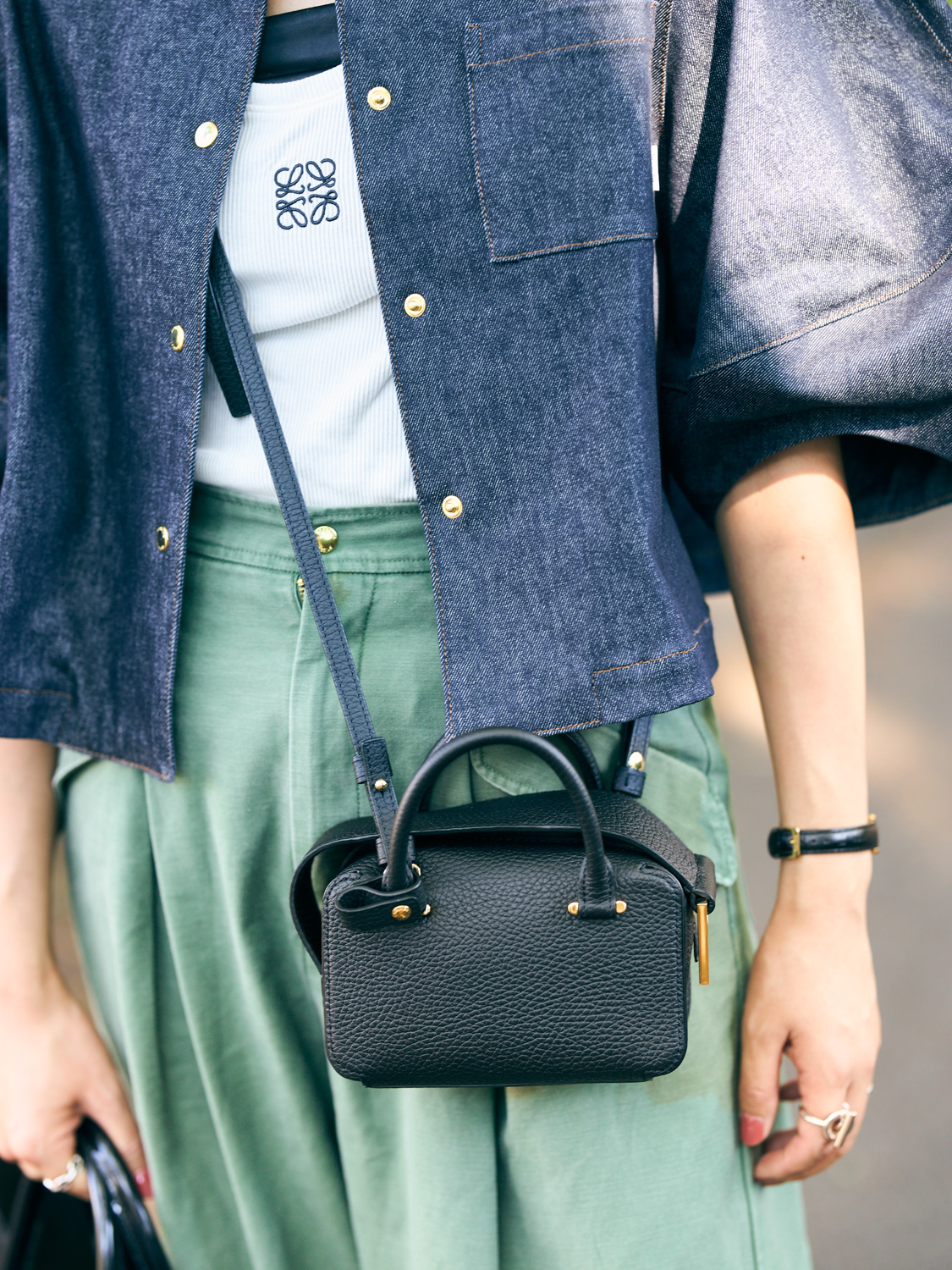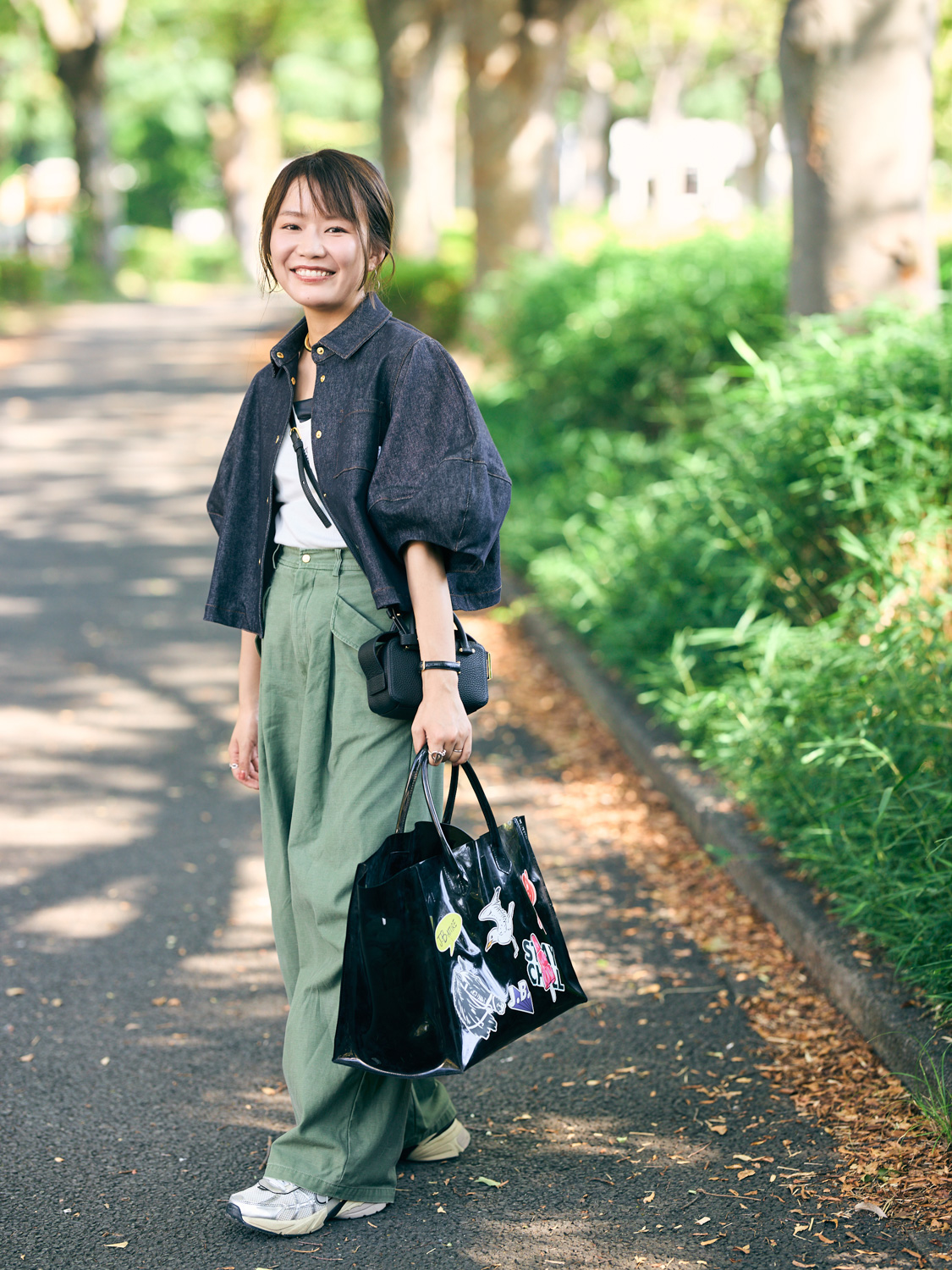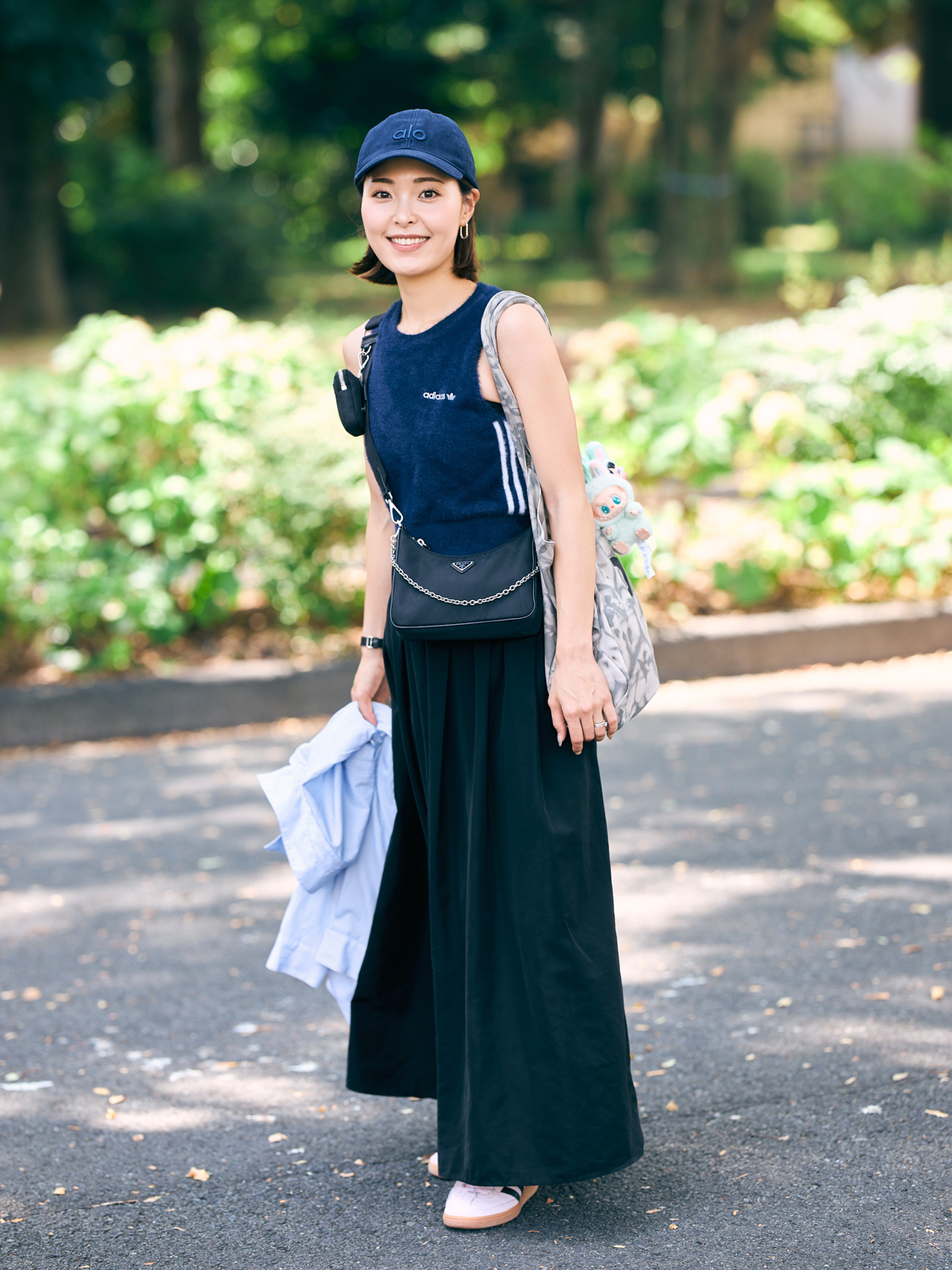 「重たくてかさばるものは大きなトートバッグに入れ、プラダのショルダーには貴重品を入れています。ひとつにまとめると荷物置き場から離れられなくなっちゃうので、写真を撮ったりと忙しい運動会では2個持ちが絶対。夫と交代で持つことが多いので、シェアしやすいデザインを選んでいます」堀内美咲さん/主婦・164㎝(5歳の女の子と3歳の男の子ママ)