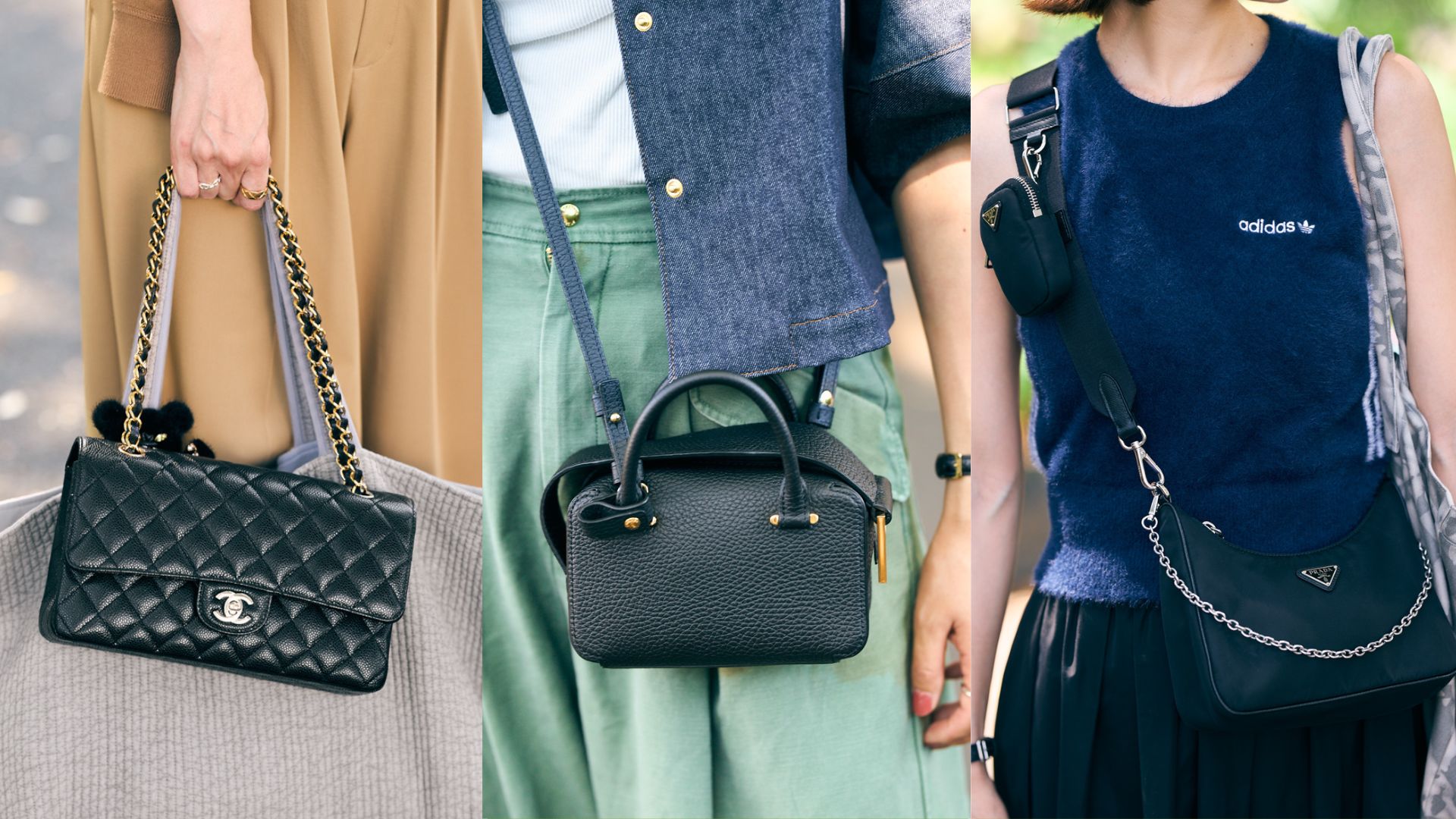 「ナイロン素材でアクティブなシーンでも使いやすいプラダのバッグは、黒なので汚れが目立ちにくく運動会や公園にもガシガシ使っています。カジュアルな雰囲気の園なので、ブランドロゴもワンポイントなら浮く心配なし。子どもの行事にも重宝しています」堀内美咲さん/主婦・164㎝(5歳の女の子と3歳の男の子ママ)