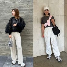 「運動会や毎日の送迎で気兼ねなく着られるプチプラアイテム。高見えを意識してネットでは買わず、できるだけ店頭で試着して素材感もチェックするようにしています。流行りのデザインものも、お手ごろ価格で手に入るのも魅力的。H&Mのスウェットパンツは白でも透け感がなく、しっかりと厚手なところがお気に入りです」天野結香さん/主婦・160㎝(7歳の女の子と5歳の男の子ママ)