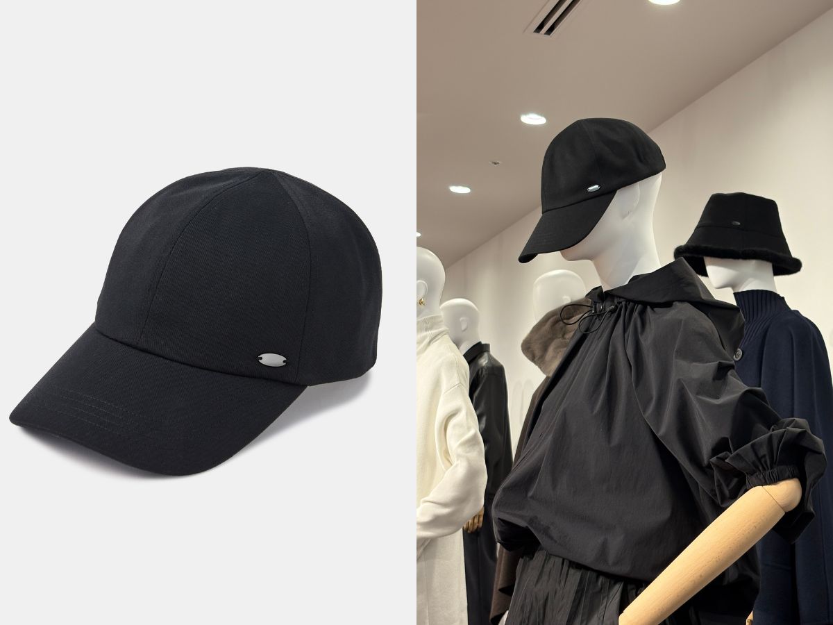 メタルパーツがアクセント! 小顔に見える「黒キャップ」