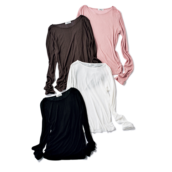 秋のはじまりにまず手に取りたいのは、シアー素材の薄手ニット。ロンT感覚で気軽に着られて、合わせるだけでいつものボトムスがぐっと新鮮に。今季トレンドのこなれ感のあるブラウンと、ほんのり大人っぽいピンク。どちらも秋コーデにやさしくなじむカラーです。