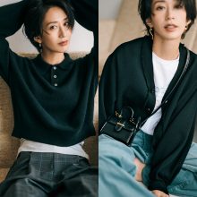 「薄手だけど秋感が出るのがうれしいリブトップス。ストレッチが効いているから、ほどよくフィットするシルエットなのに窮屈さがありません。ブラウンの色味が、濃い色デニムとの相性がよく、とにかく使いやすいです。ロンT感覚で着るだけで、自然と旬な雰囲気にアップデートできちゃいます」北田眞友加さん・30歳(158cm/3歳の男の子ママ)