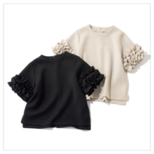今年もニットはまだ早い、そんな季節の変わり目に大活躍。一枚でサマになり、頼りになる伝説のカットソーです。人気の秘密は、体のラインを拾わず、スッキリ見えする縦ドレープと、ドラマチックに広がるペプラムシルエット。ほどよいドルマン袖やゆとりのある身幅で、着心地は快適。メイクよれを気にせず脱ぎ着できる後ろジップや、寒くなったらアウターを羽織れるよう設計されたシンプルな身頃など、ママにうれしい工夫が満載。お仕事や園行事にも使えるきちんと感も魅力です。¥17,600
