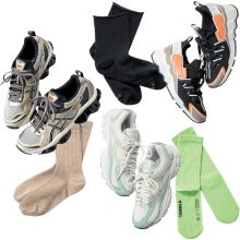 近隣の体育館を借りて行う保育園の運動会など、室内開催では靴を脱ぐことも。そこで、今回は靴を脱いでもオシャレなカラーソックスに注目。小面積でも洒落感を放つネオンや鮮やかカラーを取り入れて、快適さと気分の上がる運動会コーデを提案します。