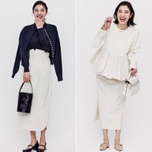 ブラウス¥23,980スカート¥24,970[ともに10月末発売予定](ともに23区/オンワード樫山 お客様相談室)ピアス¥36,300(エトワライト)バッグ¥253,000(ボナベンチュラ)シューズ¥73,700(ネブローニ)