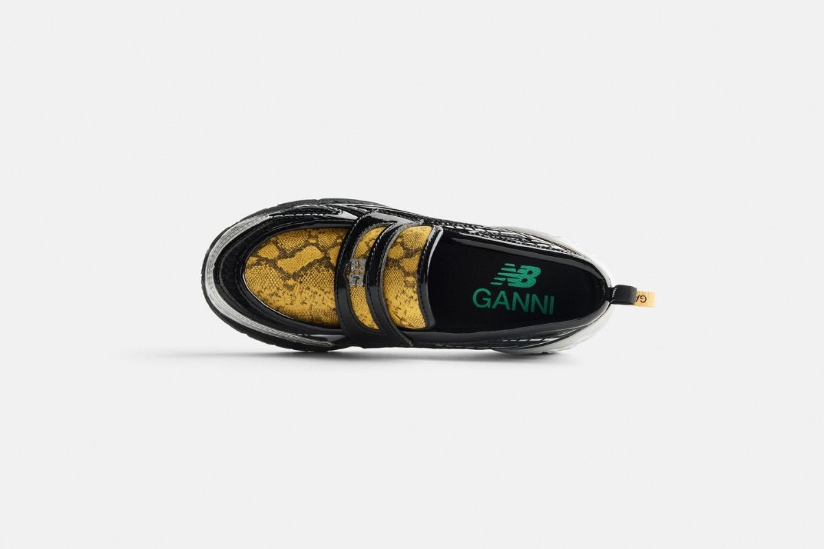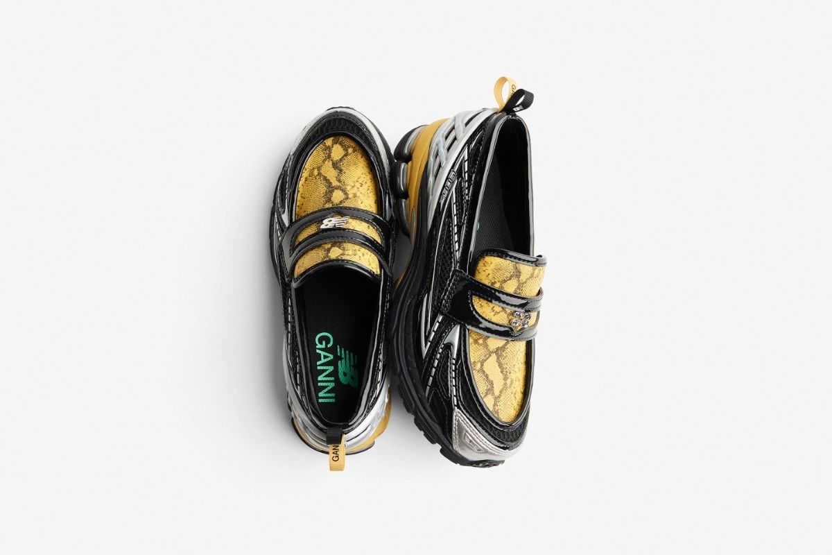 10月24日(金)に発売されるGANNI(ガニー)と、ニューバランスのコラボスニーカーはスネークプリントやメタル製のロゴが目を惹くローファータイプ。甘めコーデの引き締め役にぴったりです。
