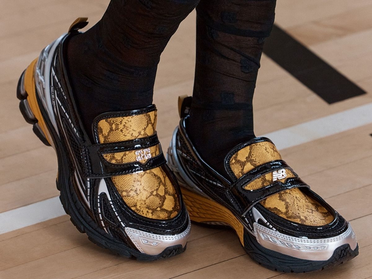 10月24日(金)に発売されるGANNI(ガニー)と、ニューバランスのコラボスニーカーはスネークプリントやメタル製のロゴが目を惹くローファータイプ。甘めコーデの引き締め役にぴったりです。