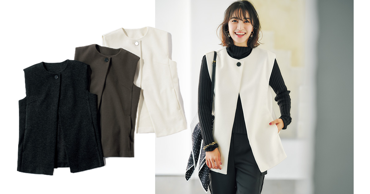 残暑の空気を抜け出して、オシャレもいよいよ秋モードに。本格的な寒い時季が来るまでの季節の変わり目をさらりと軽やかにシフトしていけるアイテムがあると便利です。手持ち服にさっと羽織るだけでオシャレも季節感もアップデートできるジレはこの秋の大本命トレンド!