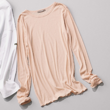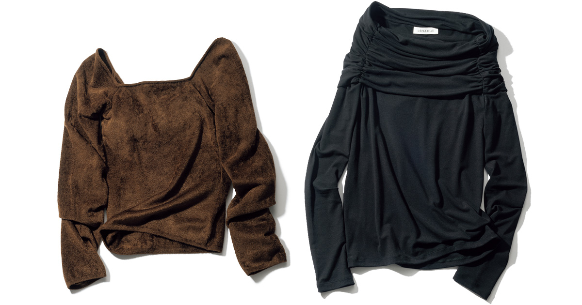 パイルの起毛感が秋っぽさを盛り上げ。ほどよいデコルテ見せが、ジャケットにインした時にちょうどいい抜け感をプラス。