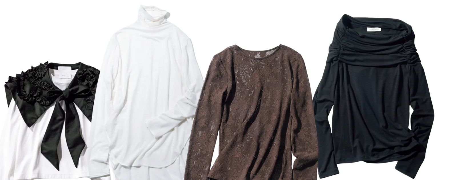 ニット未満の季節も、ロンTならライフスタイルに合わせて華やかにもカジュアルにも自在に着こなせる!今回は、レースやオフショル、首詰まり、バックオープンなど着映えデザインのロンTを厳選。通勤やお迎え、週末コーデまで幅広く活躍するスタメンアイテムをチェック。