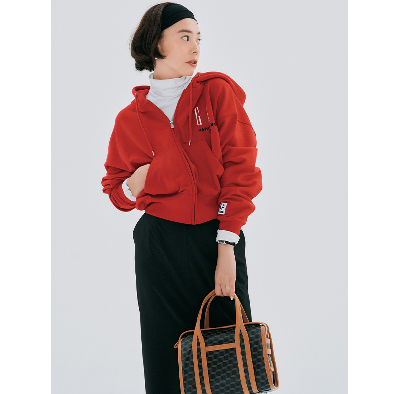タートルカットソー¥11,000(スローン╱ザ ショップ スローン 新静岡セノバ店)パーカ¥12,900(Gap)スカート¥35,200(レリタージュ マルティニーク╱マルティニーク ルミネ横浜)ピアス¥68,200(ミチ ウィルウェイ╱フォーティーン ショールーム)時計¥19,800(マトウ╱エイチエムエスウォッチストア表参道)バッグ¥187,000(ピエール アルディ╱ピエール アルディ 東京)ヘアバンド╱スタイリスト私物
