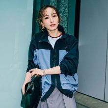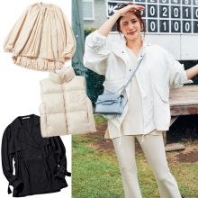 ナイロンブルゾン¥19,800バルーンビスチェ¥16,500(ともにエミ/エミ ニュウマン新宿店)パンツ¥14,000(TW)バッグ¥9,900(アウトドアプロダクツ/アウトドアプロダクツ カスタマーセンター)シューズ¥31,350(ホカⓇ/デッカーズジャパン)フープピアス¥9,900イヤカフ¥17,600(ともにラムダ)