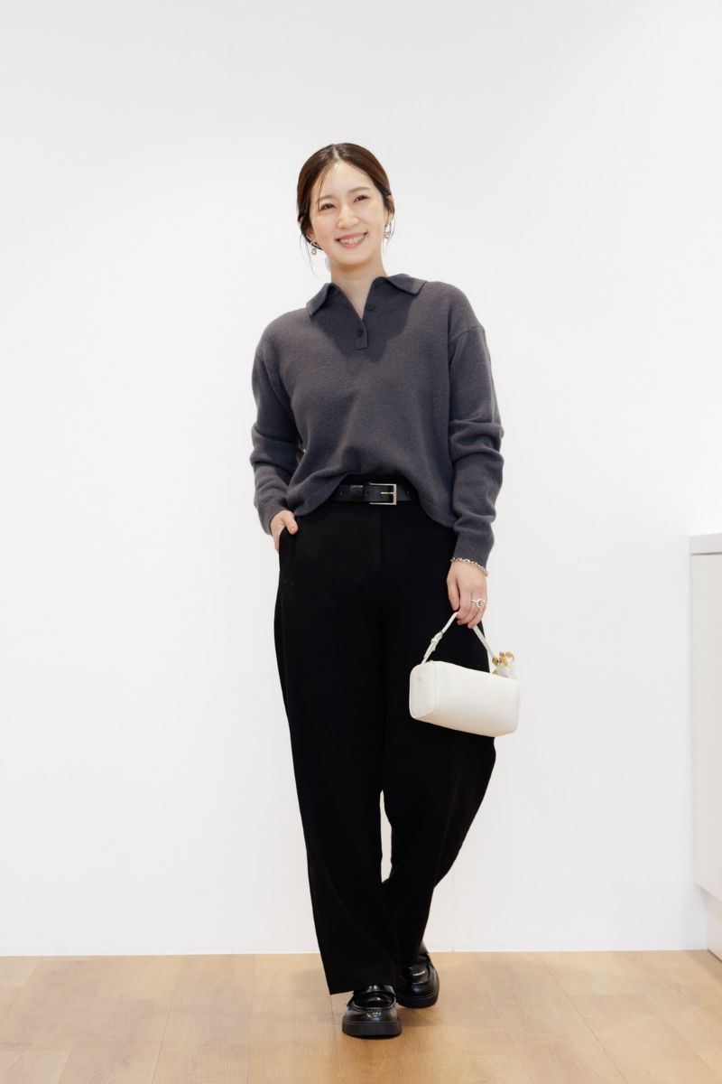 きちんと感のあるポロニットは、子どもの参観日や通勤にも活躍。裾を前だけタックインして、メリハリ良く着こなすとよりスタイリッシュに。ショート丈なのでインしてももたつきません。ウール100%で暖かく、直接肌にあたってもチクチクしない着心地の良さも魅力です。