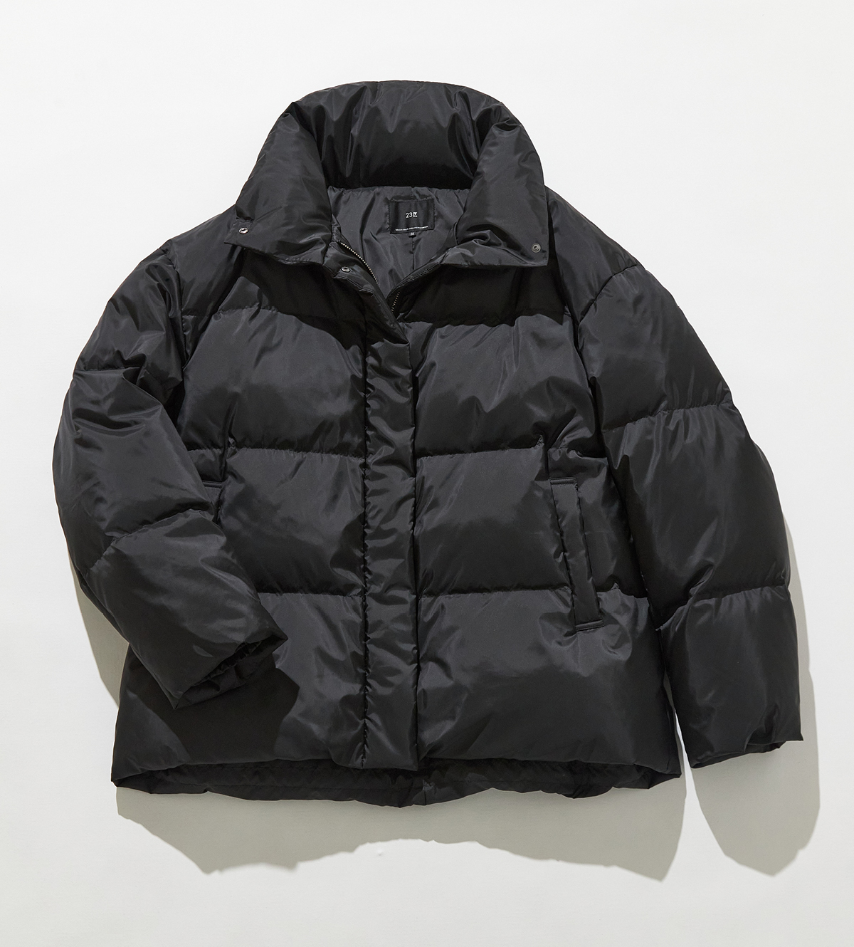 送迎や公園、見守りに旅行…冬中頼りきりのダウンが自宅で洗えるのは忙しいママにとって嬉しい限り。機動力あるショート丈は大きめ衿が着こなしのアクセント。ハンサムなモノトーンコーデに更新感をプラスしてくれる。