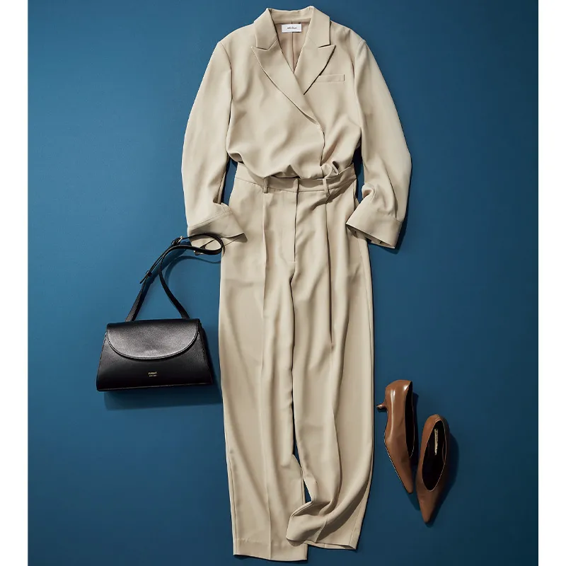 オールインワン¥25,300(ミラ オーウェン/ミラ オーウェン ルミネ新宿2店)バッグ¥41,800(ラシット/ラシット 西銀座店)靴¥66,000(ブレンテッラ フォー オデット エ オディール/オデット エ オディール 新宿店)