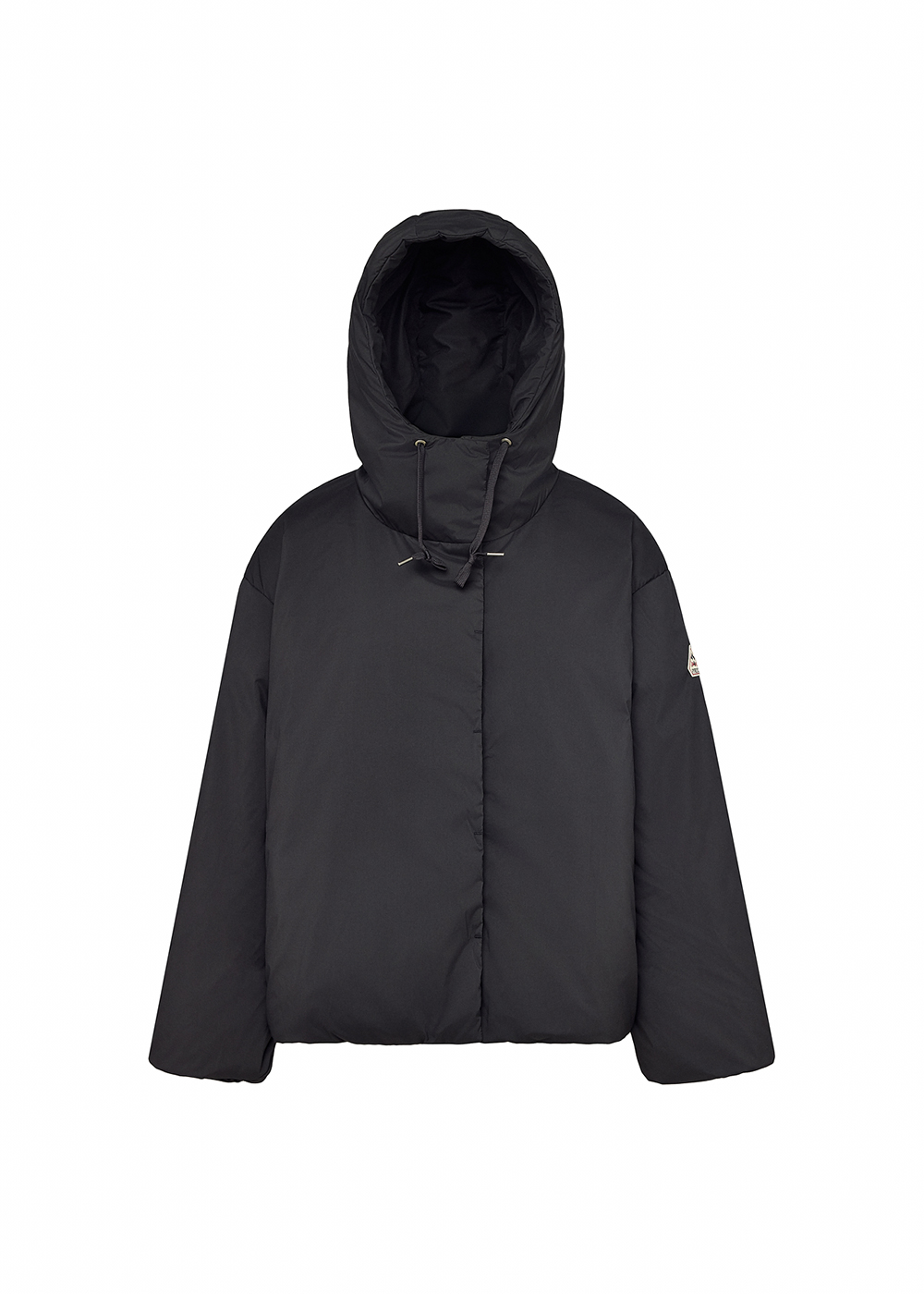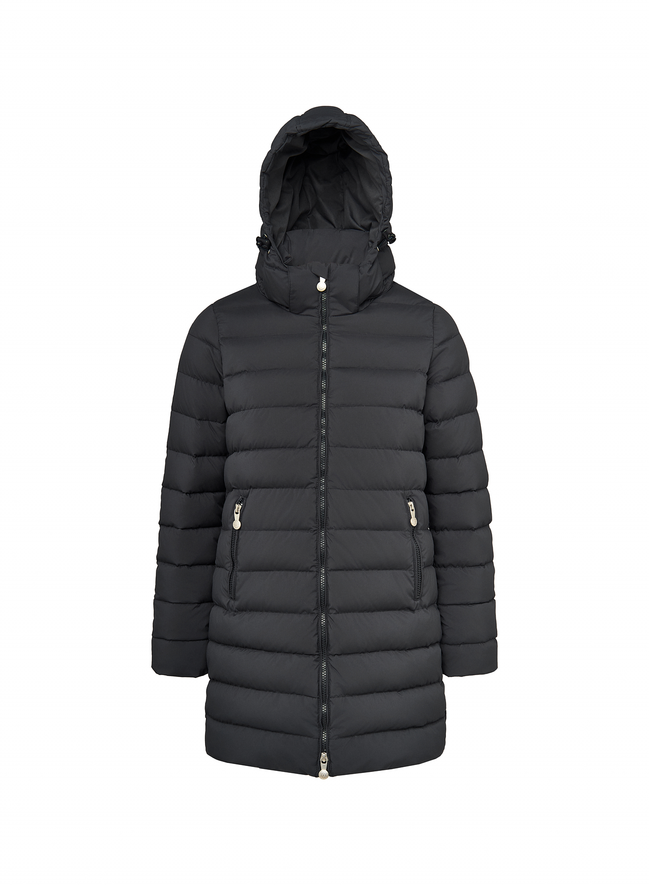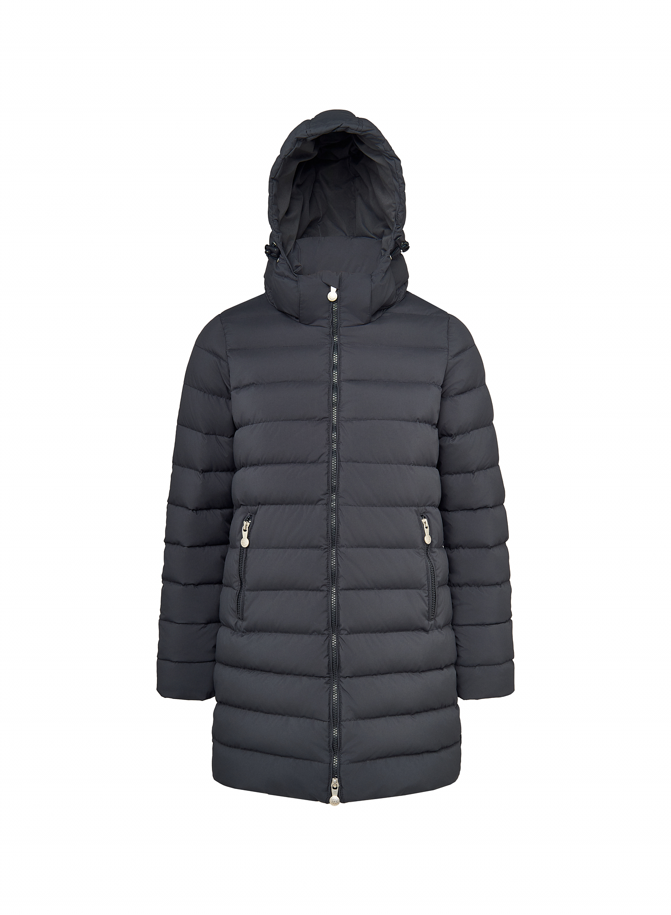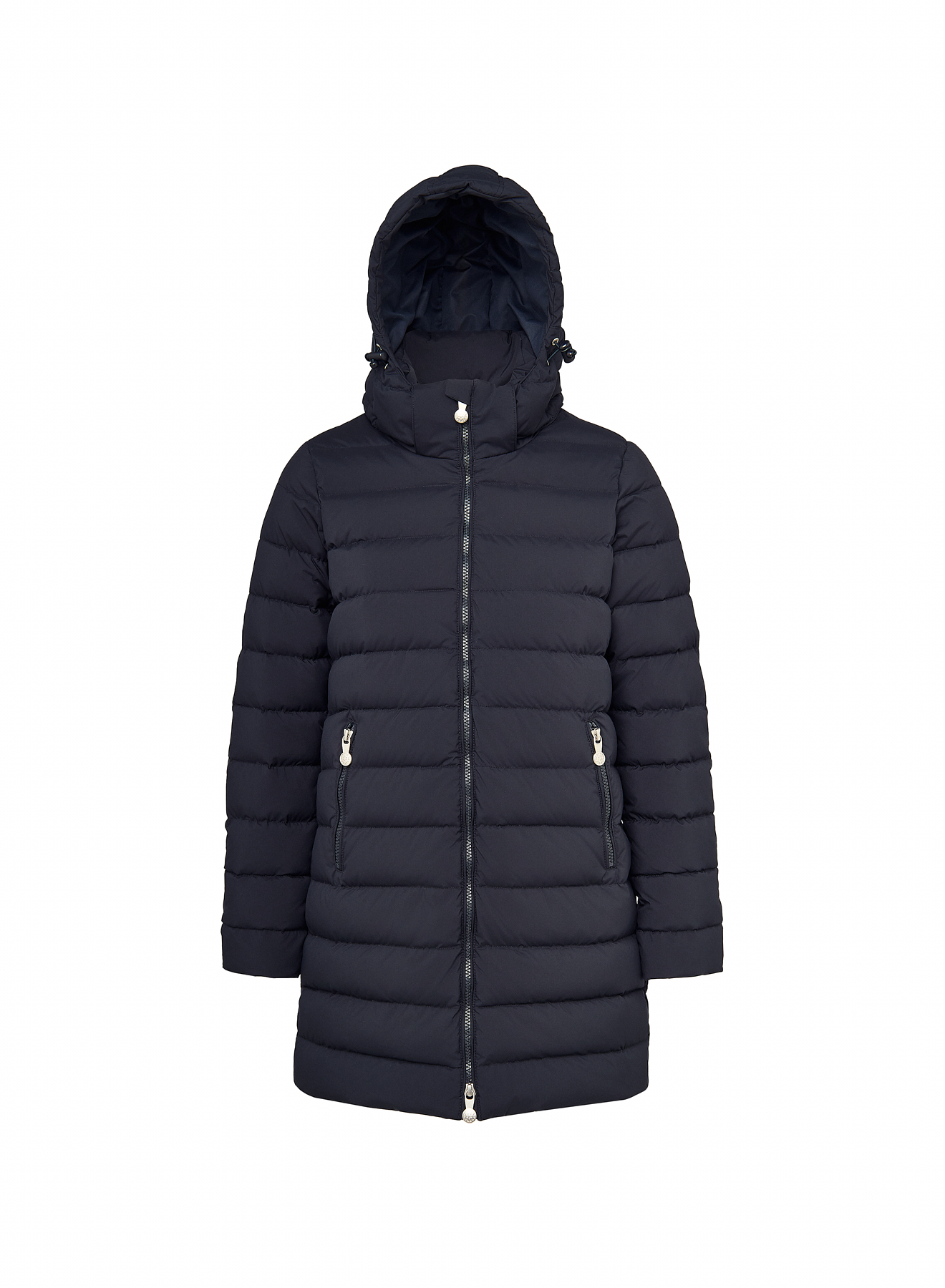 着脱できるフード付きのシンプルなデザインは、本国フランスでも人気が高いロングセラー。表地はピーチスキンのようにやわらかで上品。丈も絶妙で、ふんわりロングのスカートとも好相性。