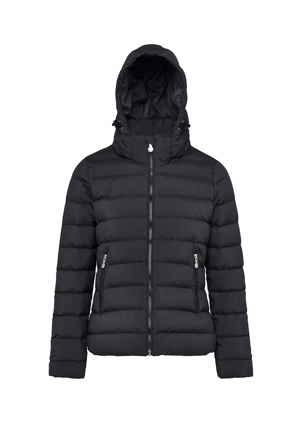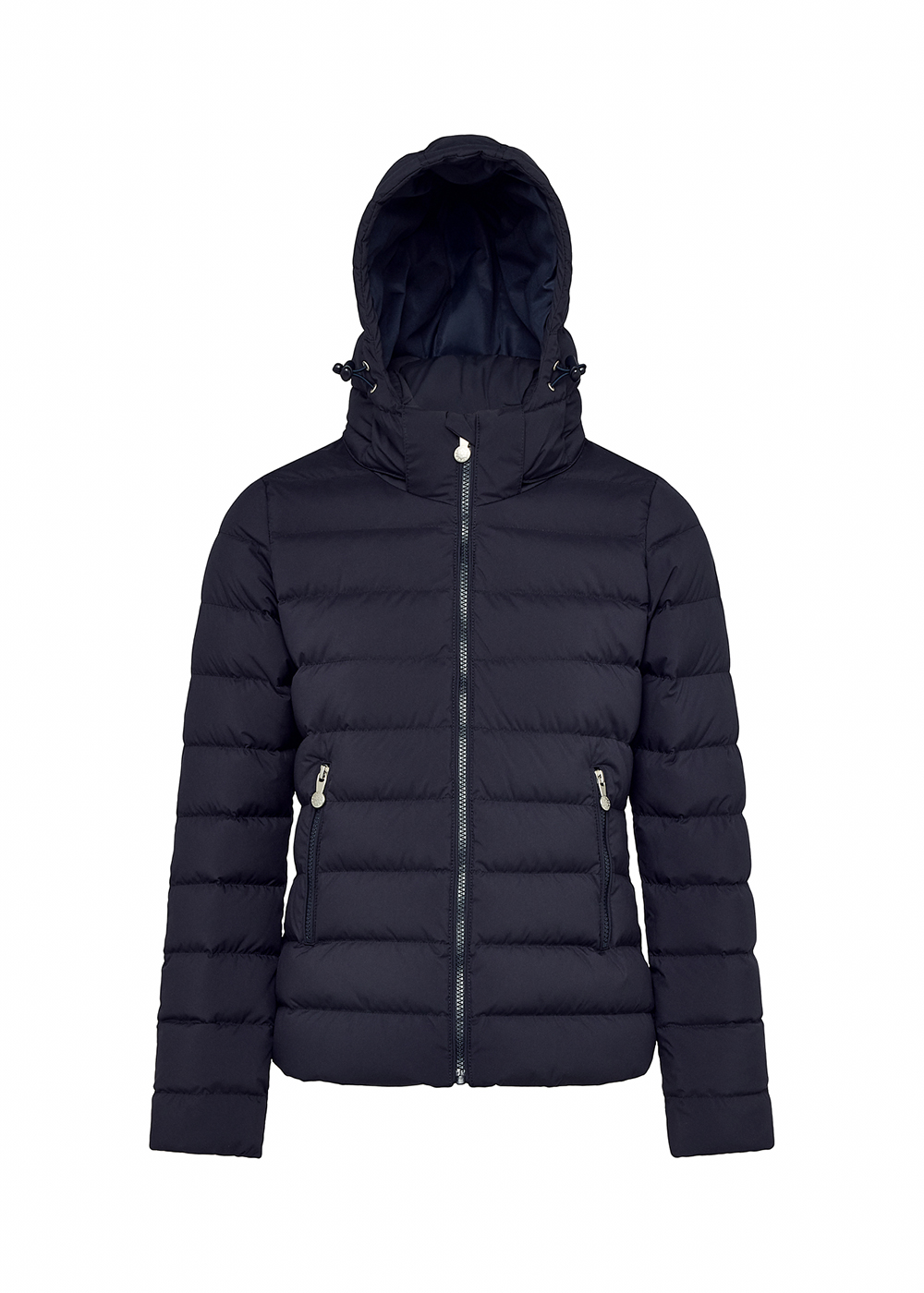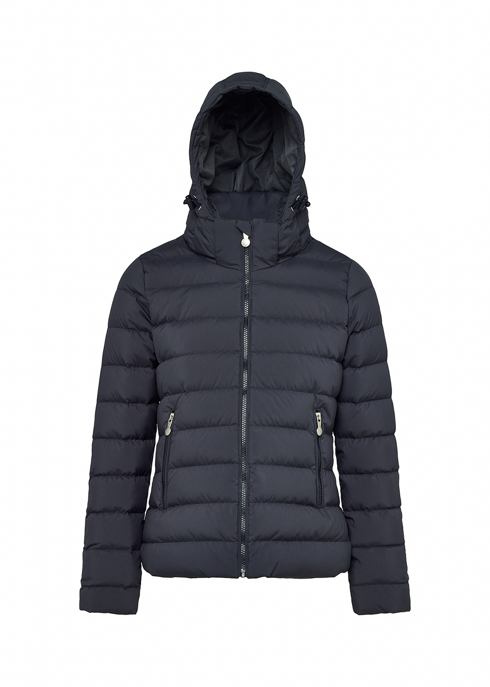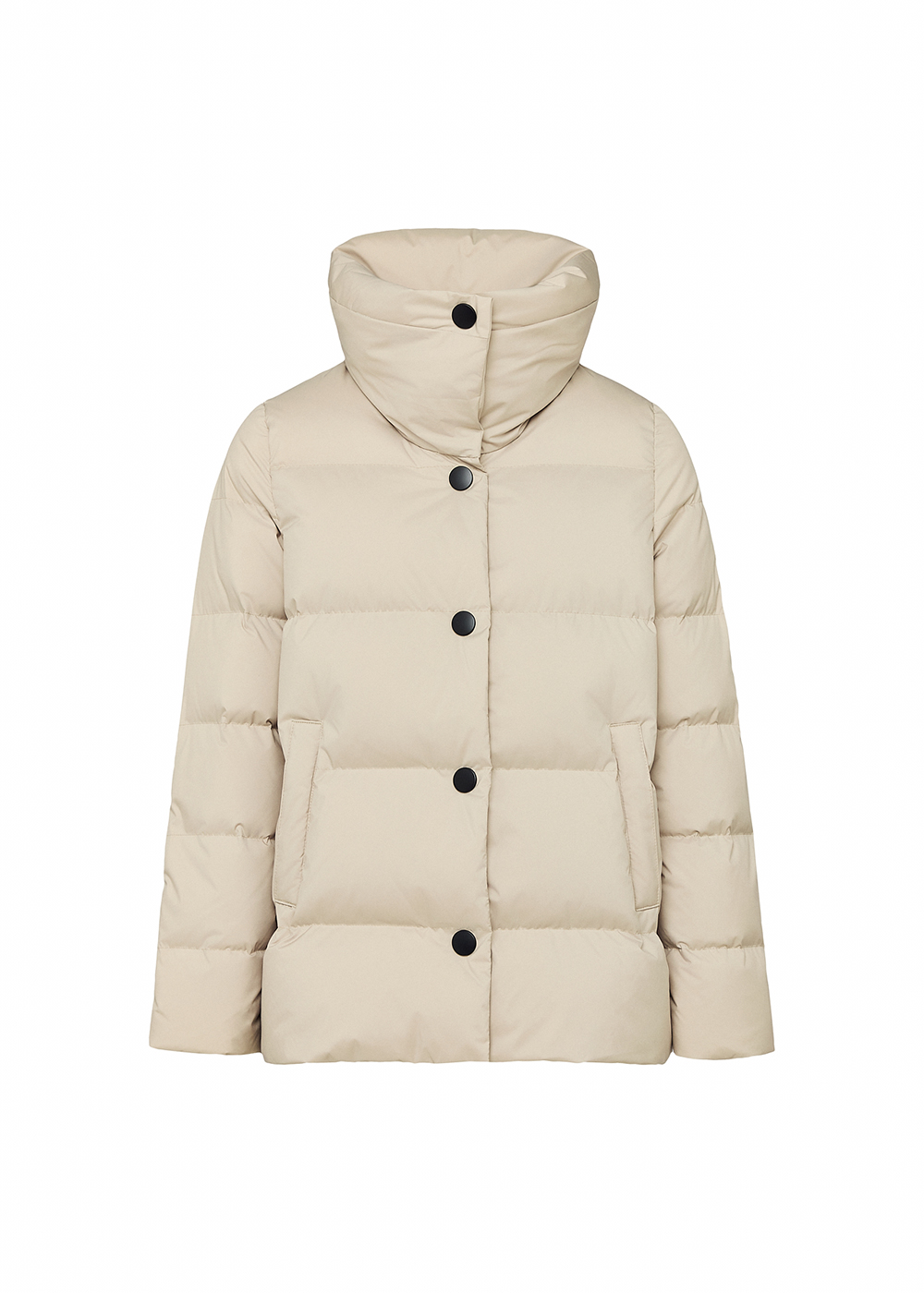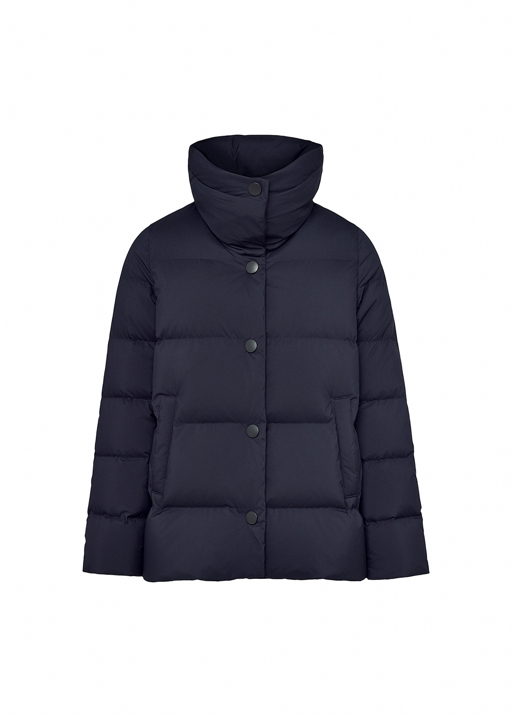 ダウン特有のボリュームを抑えたすっきりシルエット。ジップポケットは内側がフリースライニング仕様で、手を入れたら暖かい。