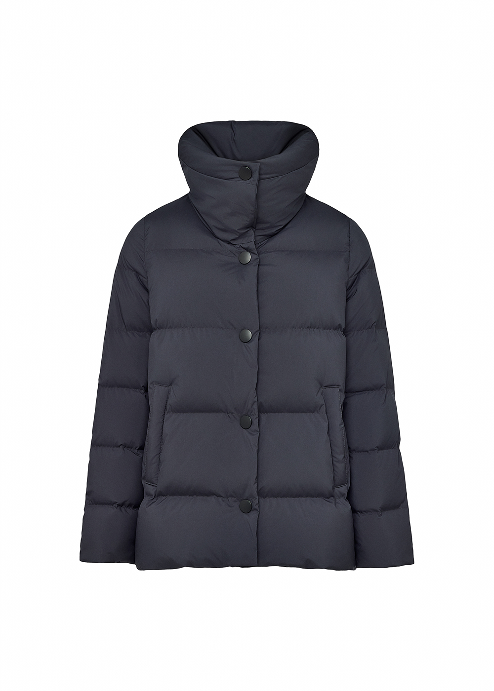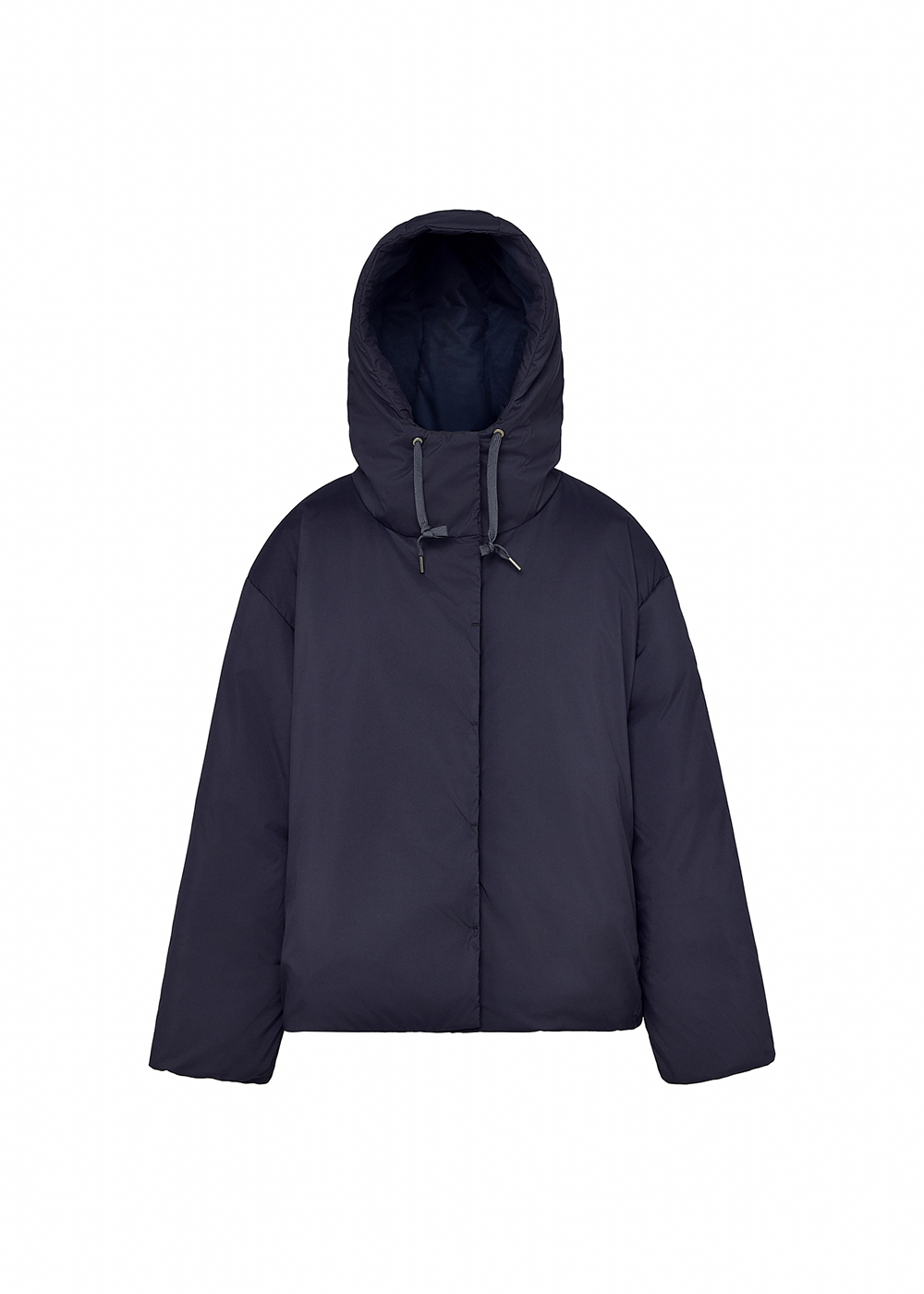 ゆったりシルエットで重ね着も快適。高めの衿とシルエットが変えられるドローコードで防寒性とデザイン性を両立。ダブルジップや隠しボタンなど細部までこだわりを発揮。