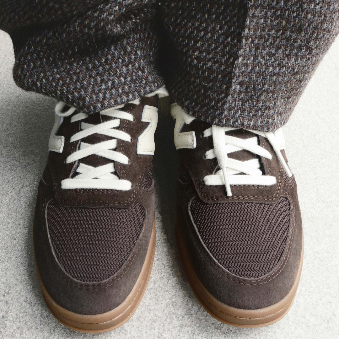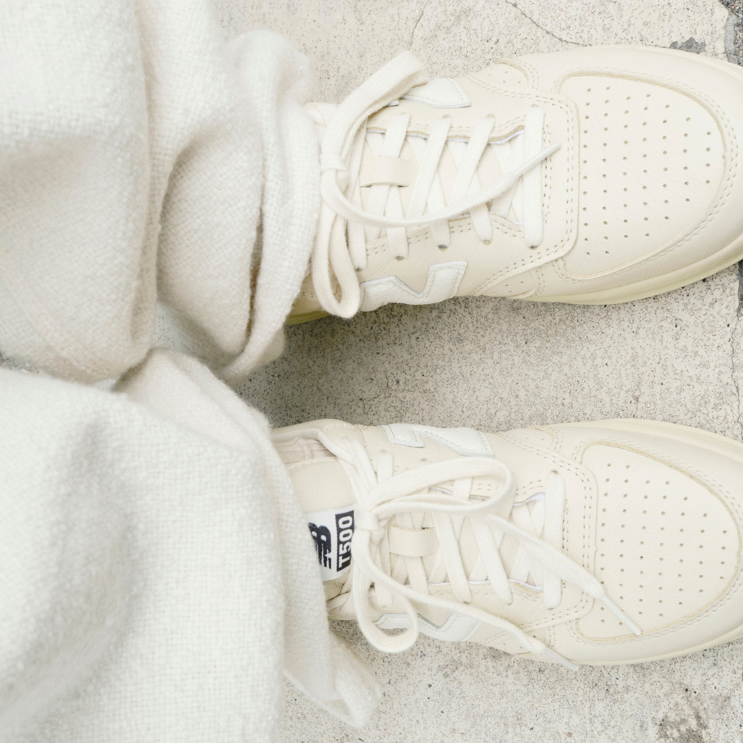 1982年に誕生した名作テニスシューズT500を、時代を超えて愛されるクラシカルなデザインはそのままに、AURALEEらしくアップデート。<VINTAGE BROWN>と<VINTAGE IVORY>の2色展開で、どちらも長年愛用してきたかのような自然な色合いが、足元に上品で落ち着いた印象をプラスします。さらに、カラーごとに異なる上質な素材を採用することで、シンプルながらも洗練された存在感を演出。子どもとの公園や買い物、通勤などの日常コーデを格上げしてくれる一足です。