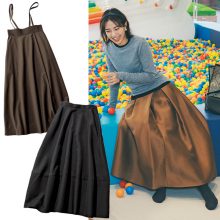 優しいブラウンは秋コーデにもってこい!ベルト合わせも素敵。スカート¥47,300(マーガレット・ハウエル)