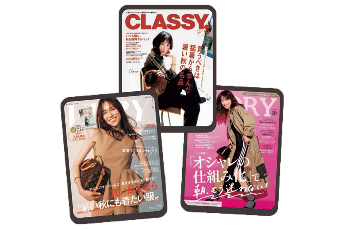 毎月デジタル版「VERY」と「CLASSY.」「STORY」の無料購読をプレゼント。ダイジェスト版でお届けしている「VERY NaVY」もフル版を購読できちゃいます。最新号だけでなく前月号もスマホやタブレットなどの端末で読めるから、移動中やすきま時間にインプットができて便利!