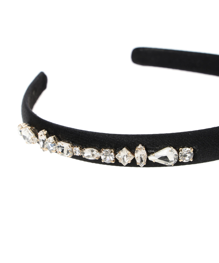 さまざまなシェイプのビジューがミックスされたカチューシャは付けるだけで顔まわりが明るく! シンプルな洋装スタイルがぐっと華やかに仕上がり、写真映えも狙えます。