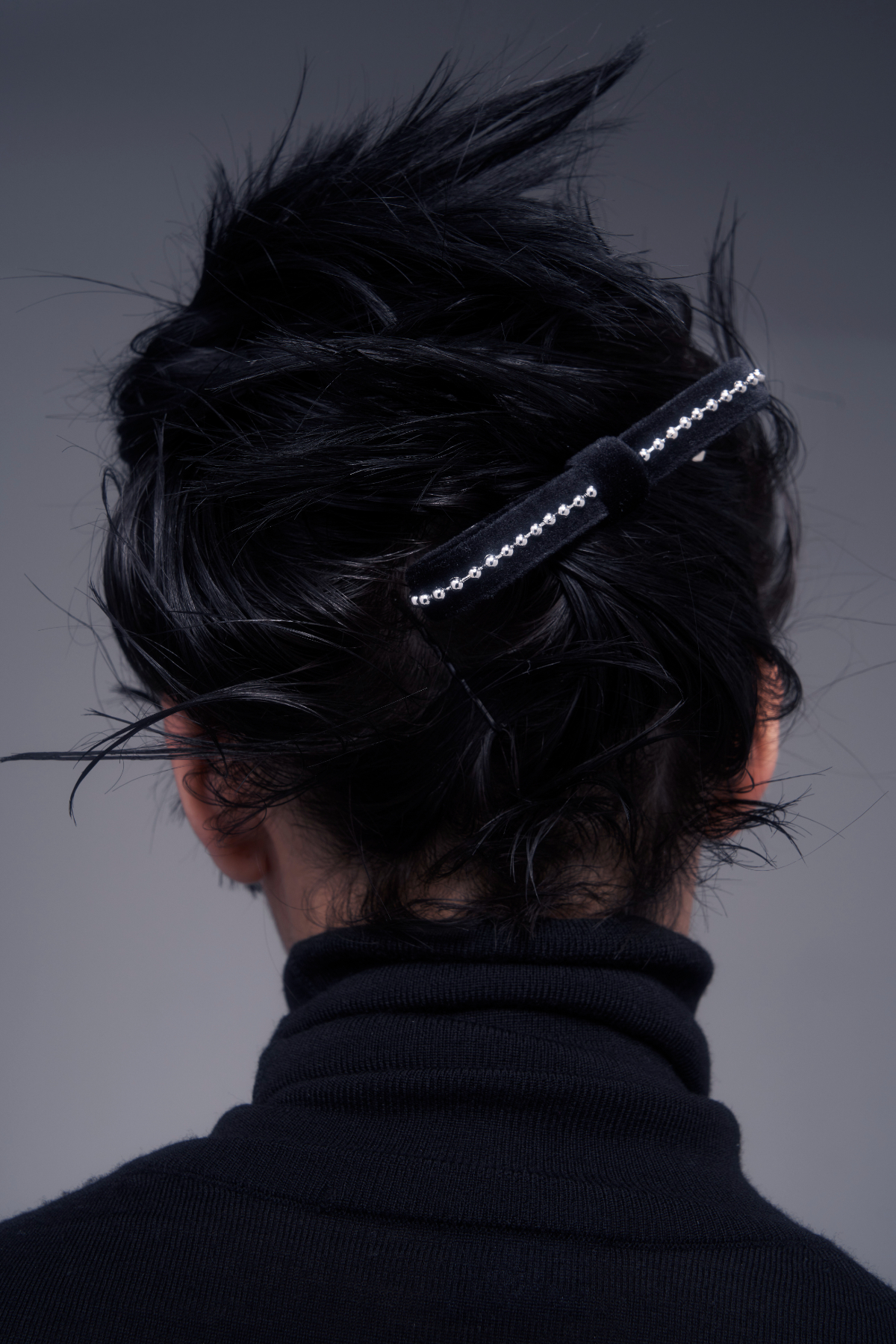 波打つデザインが特徴の華奢なカチューシャは、思い切って前髪をアップして着けてみて。マットなブラックカラーとひとくせあるデザインが、フォーマル服にひとさじのモード要素をプラスし一気にこなれた雰囲気に。