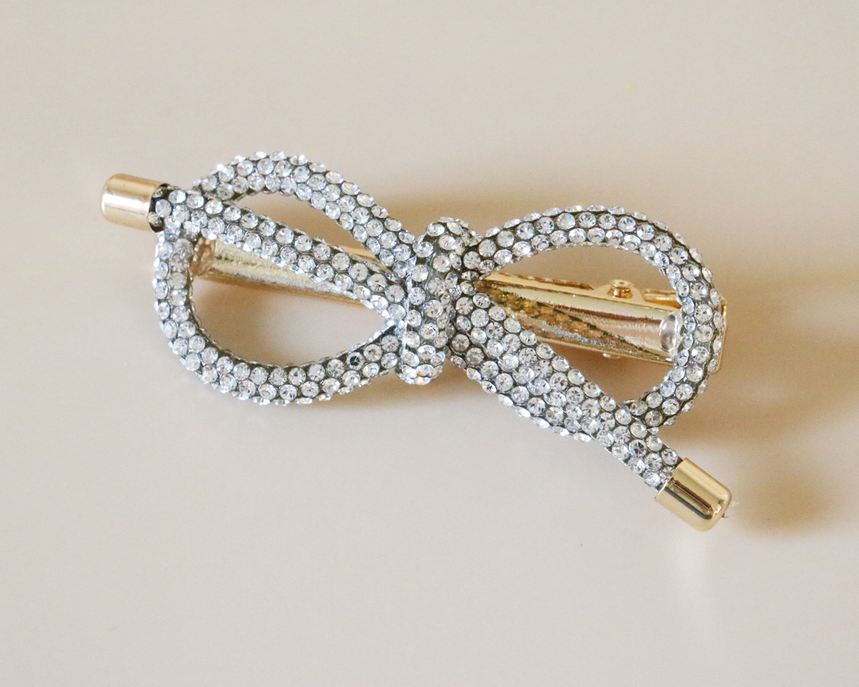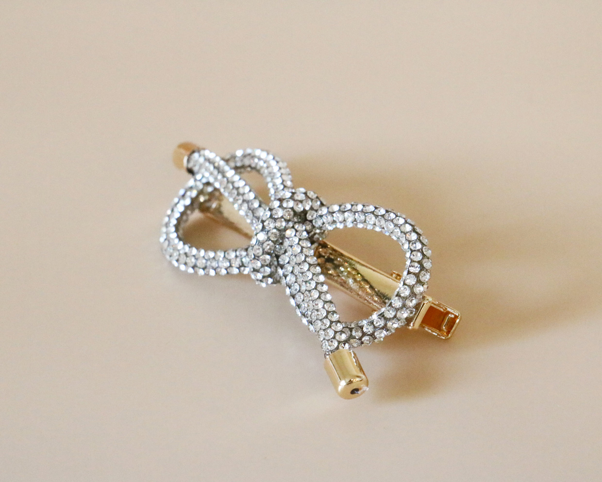 キラキラして特別感たっぷりなリボンクリップは縦6cm、横1.5cmの小さめサイズで着けやすい。顔まわりにさっとつけたり、ポニーテールやおだんごヘアの根本につけたりと汎用性の高いアイテムです。クリップのホールド力があるので崩れにくく、特に顔まわりのスタイリングにおすすめです。