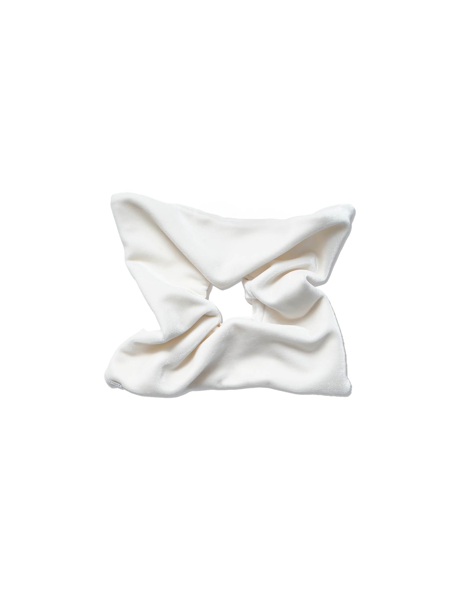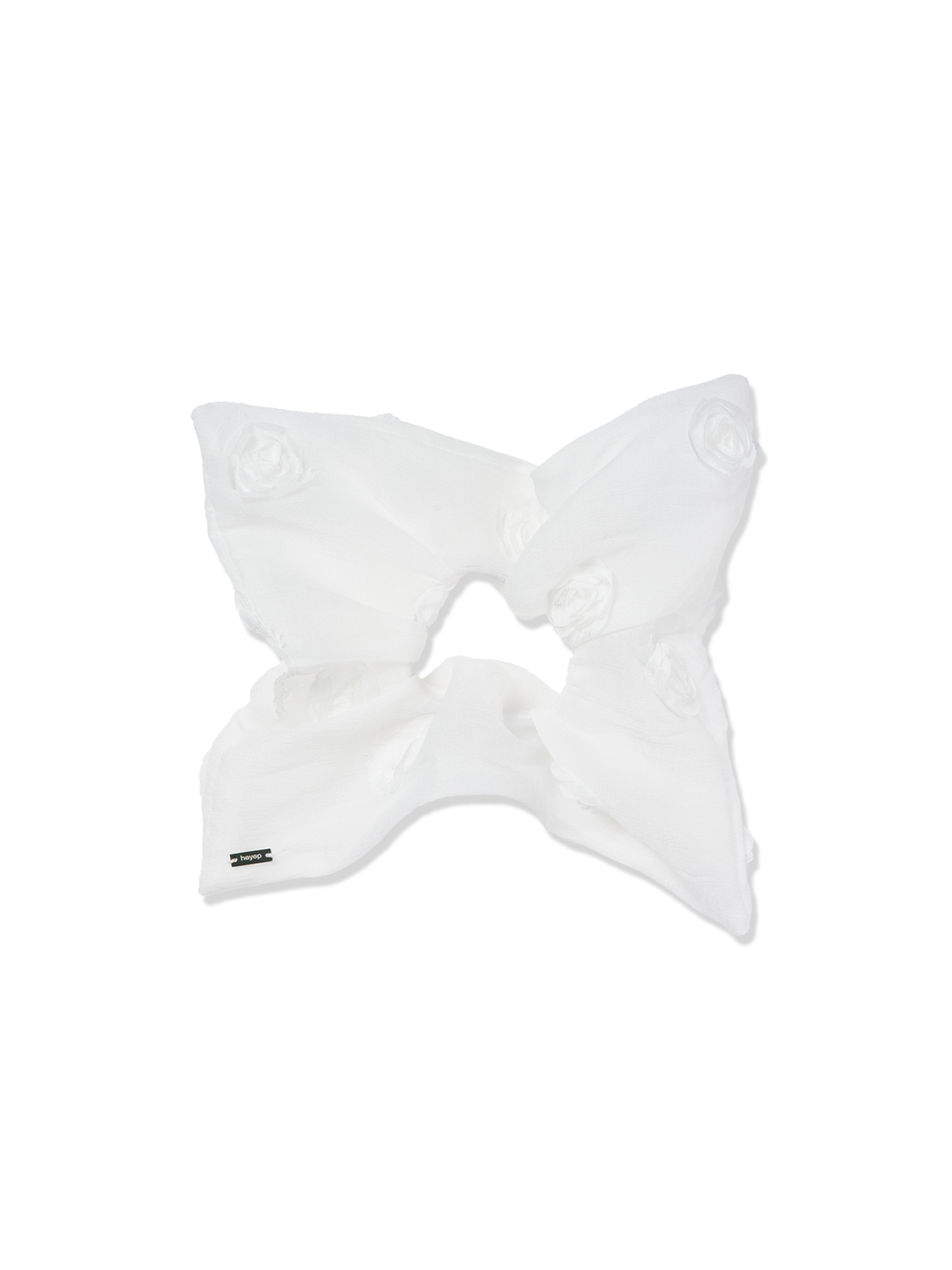 結ぶだけでこなれたヘアスタイルに仕上げてくれるシュシュは「ヘイップといえば」な人気アイテム。モードな雰囲気漂う特大ボリュームで、 どの方位からの記念写真も素敵に。